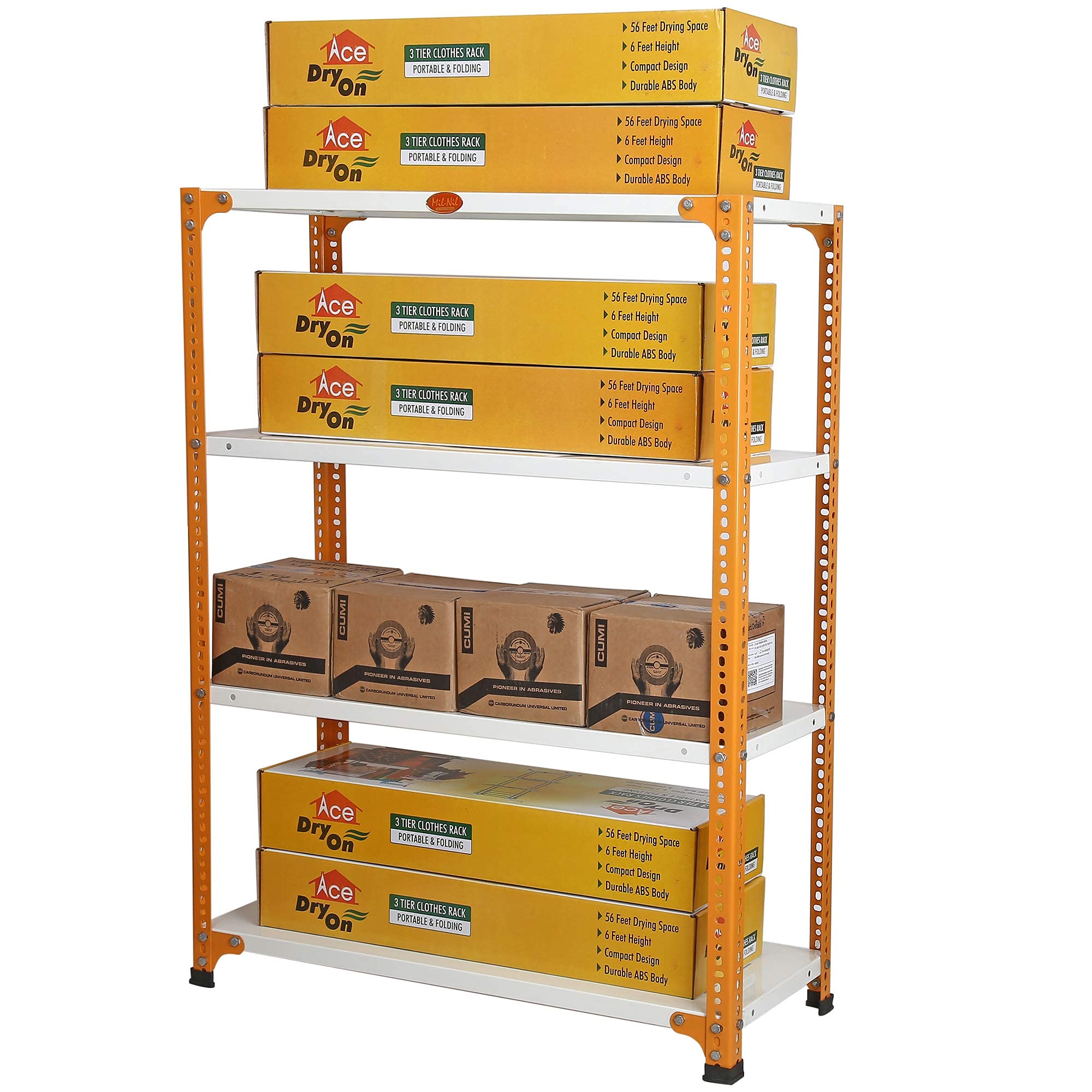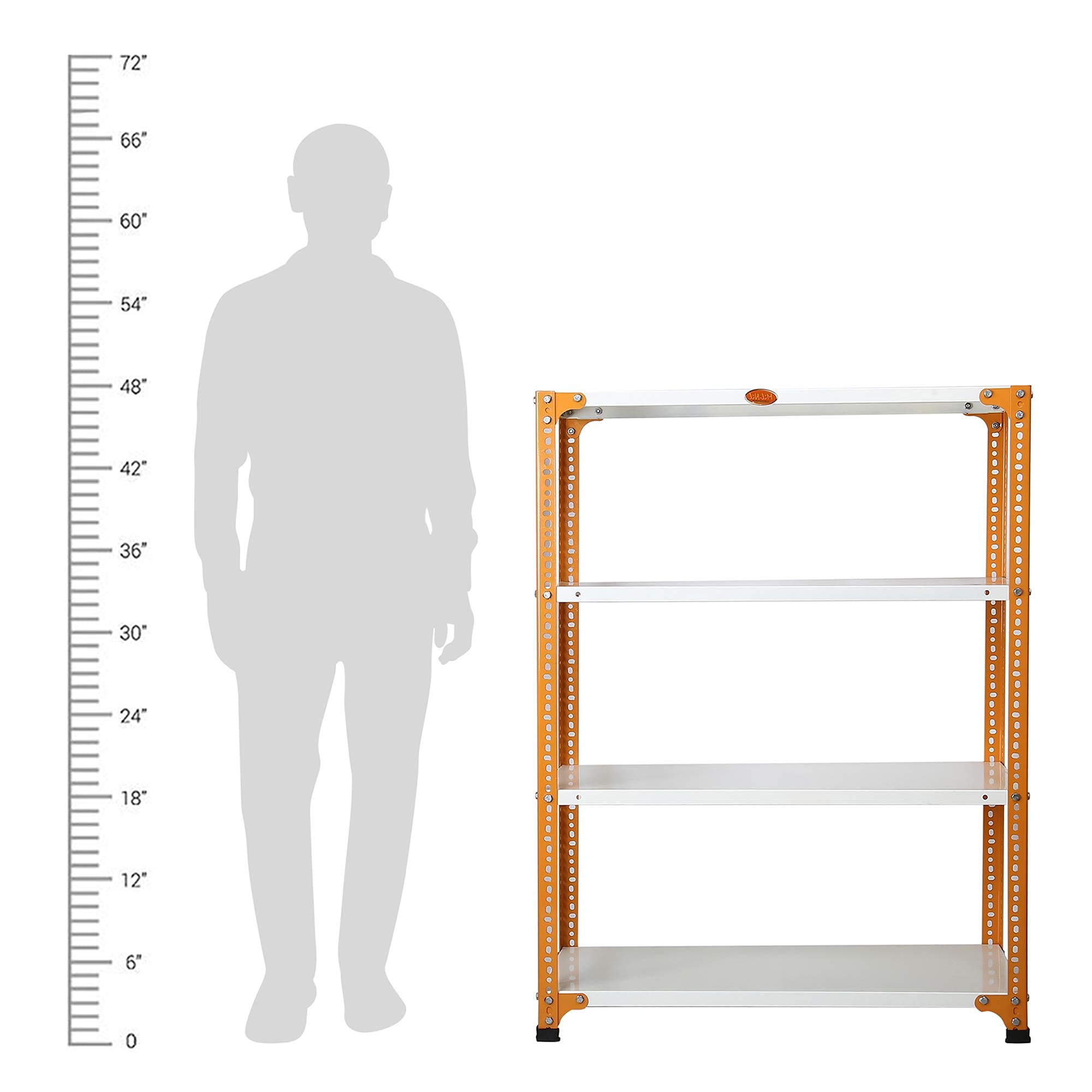 Item NameMil-Nil Prime CRC Sheet 4 Shelf Multipurpose Space Saving Storage Rack, 48 x 36 x 15 Inch, 22 Gauge (Ivory-Orange) Powder Coated 16 Gauge Angles
