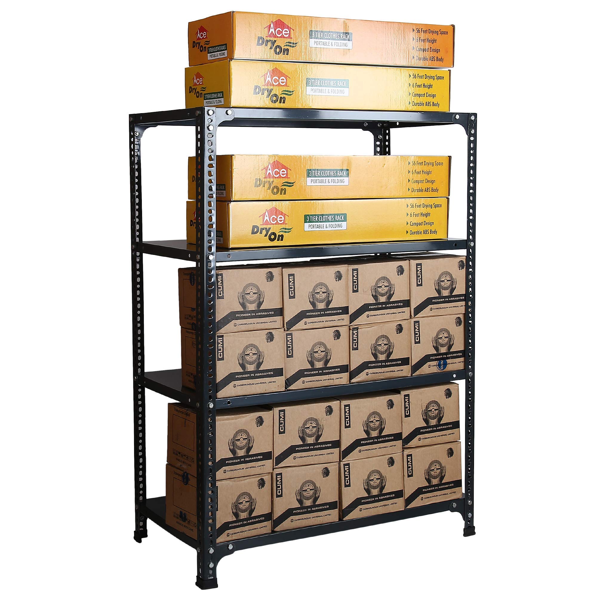 Ideal for home, office, industries and warehouse, the shelving unit offers a premium solution for everyday storage. From files and extra supplies at work to canned goods, pantry items, or small appliances in the kitchen to cans of paint, tools, seasonal household items, or holiday decorations in the garage or basement, the shelving unit helps keep it all neatly organized and easy to access. You can accommodate your clothes and books in one shelf. This rack shelf has enough looks to decorate your house and enough space to add up storage in your house. Books and clothes and other small things like toys can find their permanent place here.