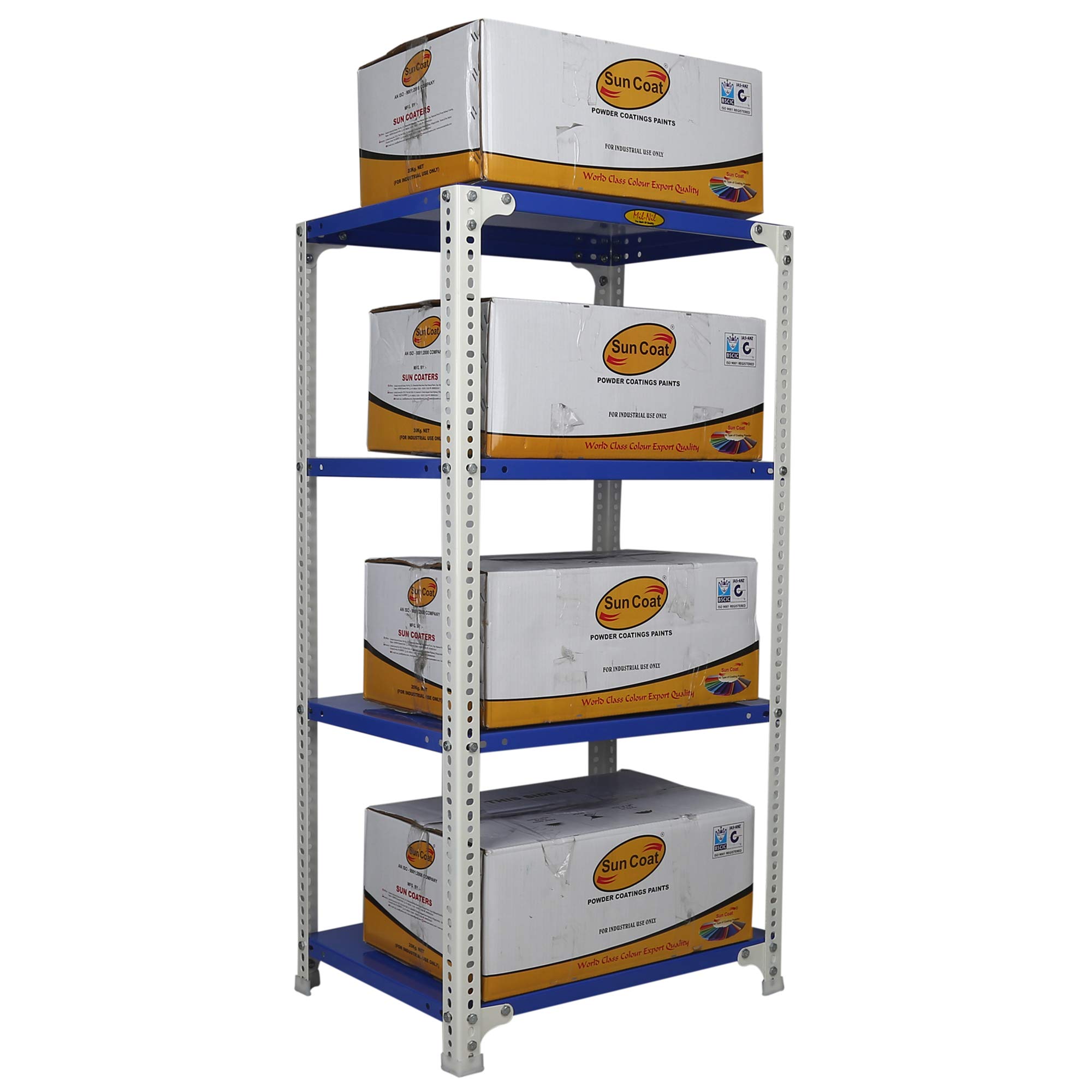 Item NameMil-Nil Prime CRC Sheet 48x30x18 Inch Multipurpose Storage, Adjustable Shelf, Slotted Angle Rack with 4 Shelves 24 Gauge_Blue/White 16 Gauge Angles