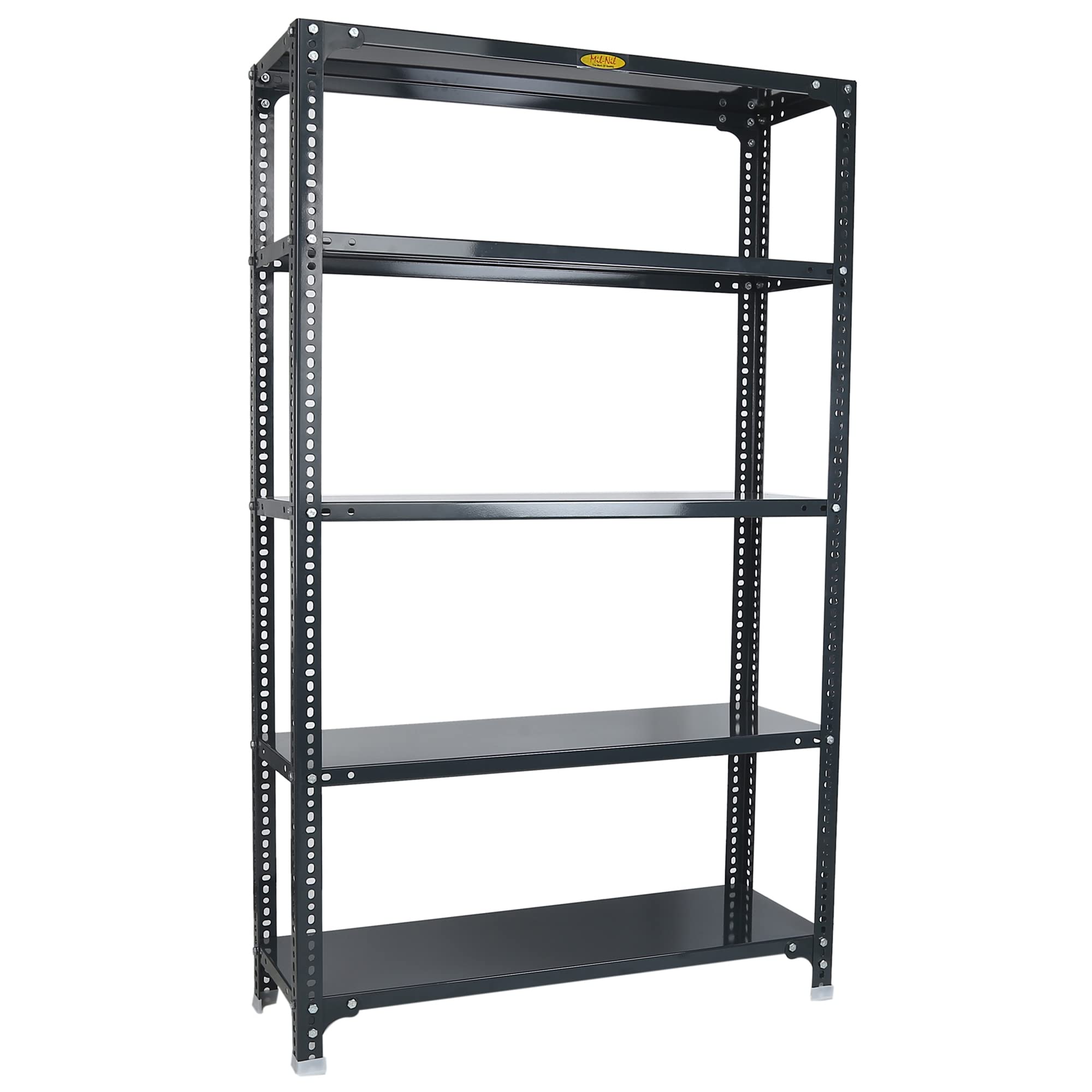 Mil-Nil Prime CRC Sheet 5 Shelf 24 Gauge Multipurpose Slotted Angle Rack | Adjustable Shelf Hight for Home & Kitchen 18 Gauge Angle (48X36X9 inches, 11 Kg, Grey)