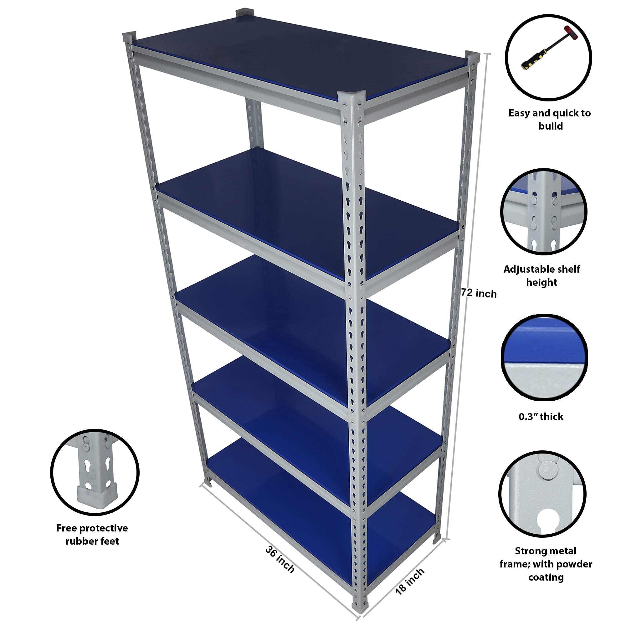 Mil-Nil Prime CRC Sheet 5 Shelf Multipurpose Boltless Rack, 72 x 36 x 18 Inch, Powder Coating (72 x 36 x 18) 22 guage