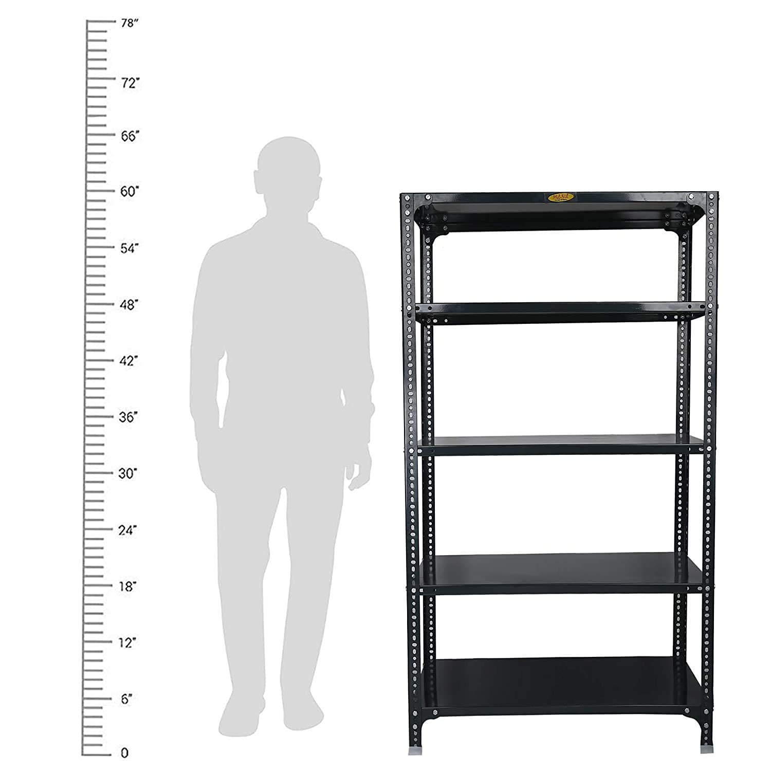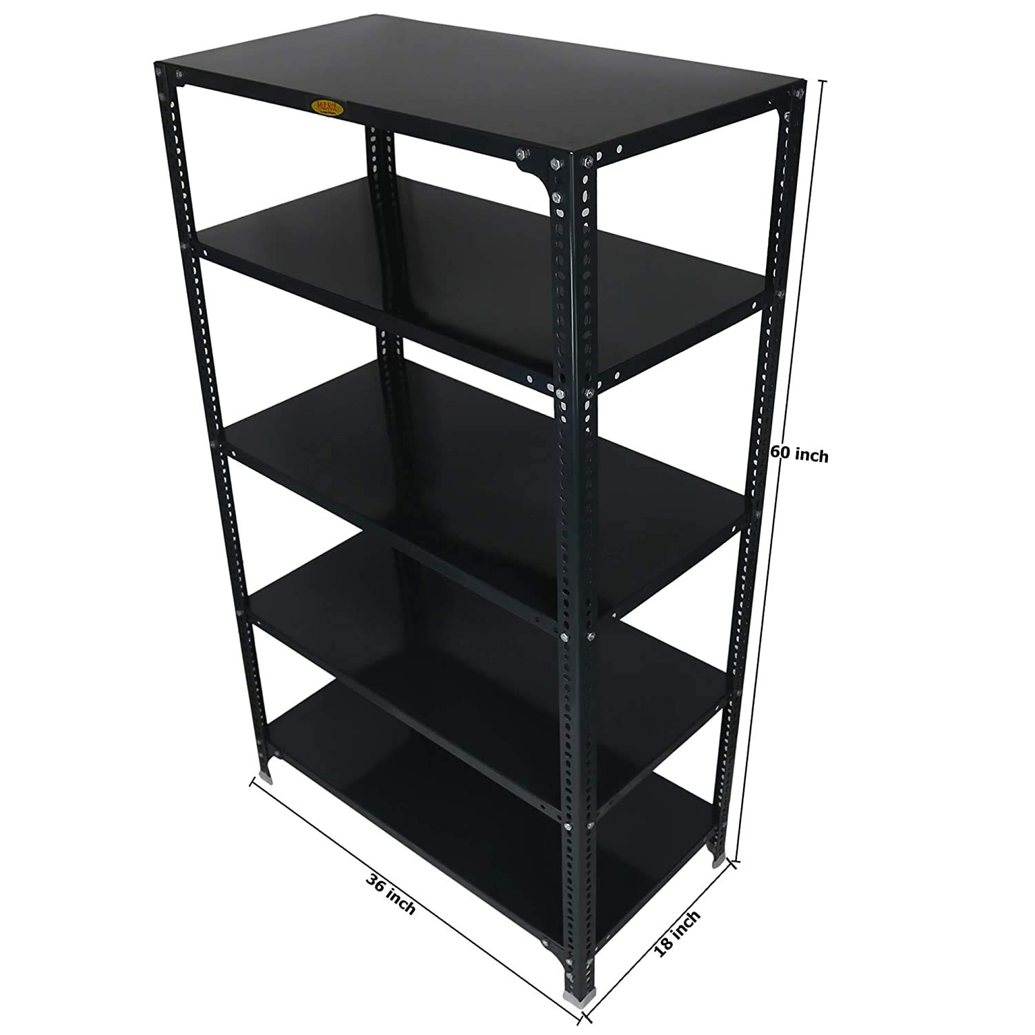 Item NameMil-Nil Prime CRC Sheet 5 Shelf Multipurpose Slotted Angle Rack, 60 x 36 x 18 Inch, 18 Gauge (Grey) 14 Gauge Angles