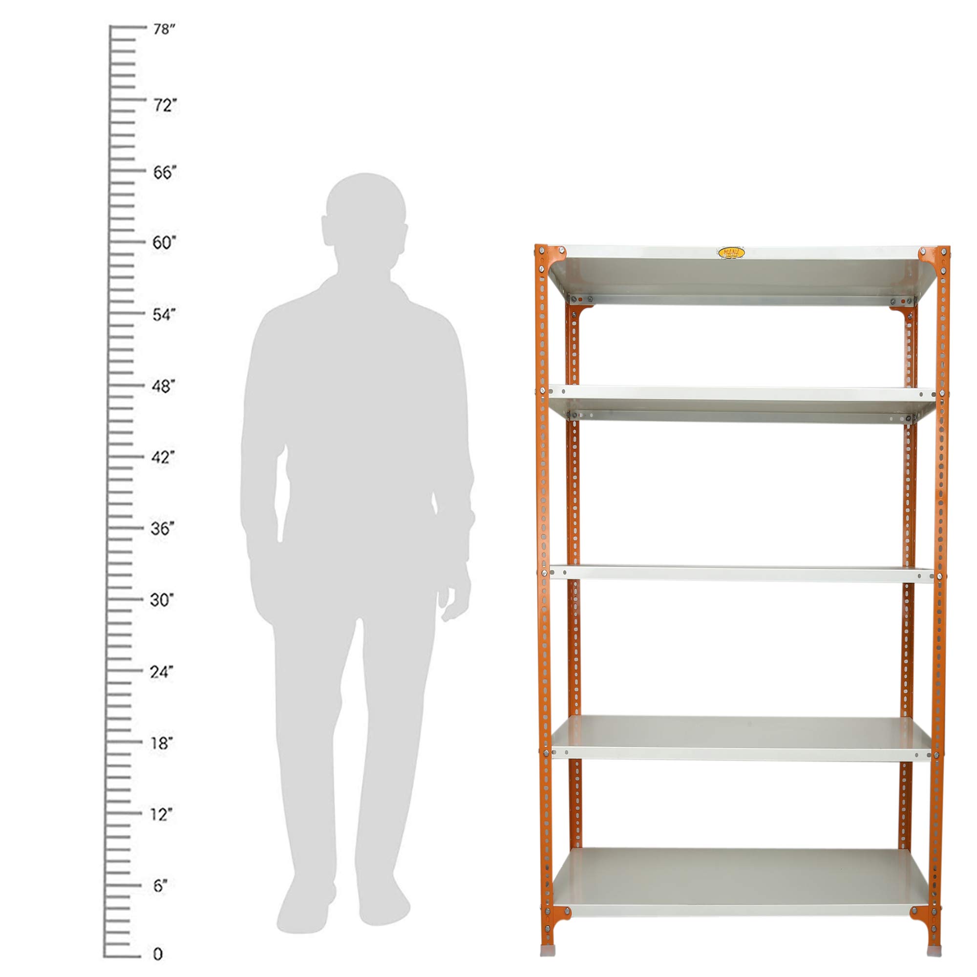 Mil-Nil Prime CRC Sheet 5 Shelf Multipurpose Slotted Angle Rack, 60 x 47 x 18 Inch, 22 Gauge [(Orange-Ivory) Powder Coating] 16 Gauge Angles