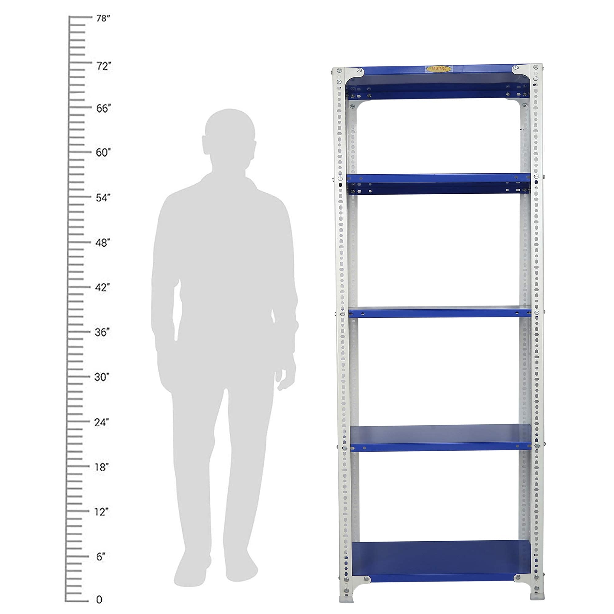 Mil-Nil Prime CRC Sheet 5 Shelf Multipurpose Slotted Angle Rack, 72 x 24 x 15 Inch, 24 Gauge [(Blue-White) Powder Coating] 16 Gauge Angles