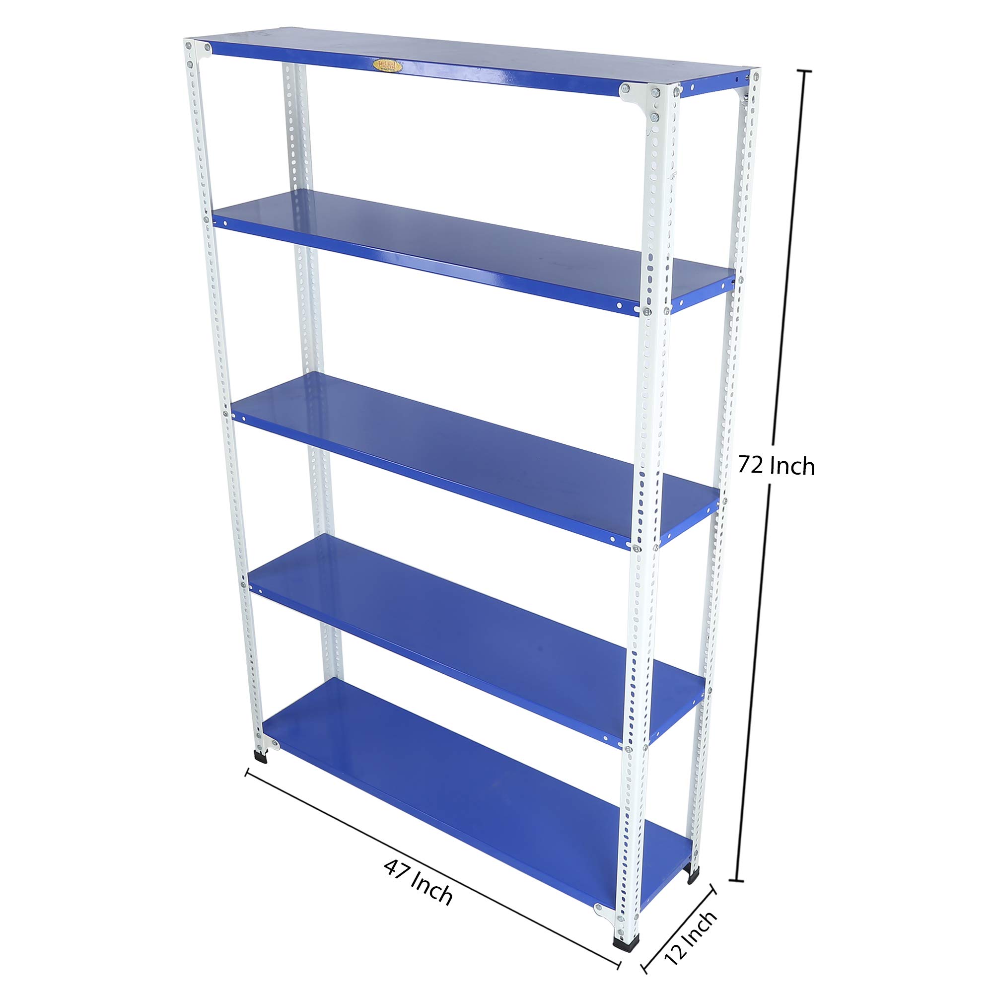 Item NameMil-Nil Prime CRC Sheet 5 Shelf Multipurpose Slotted Angle Rack, 72 x 47 x 12 Inch, 22 Gauge (Blue-White) Powder Coated 16 Gauge Angles