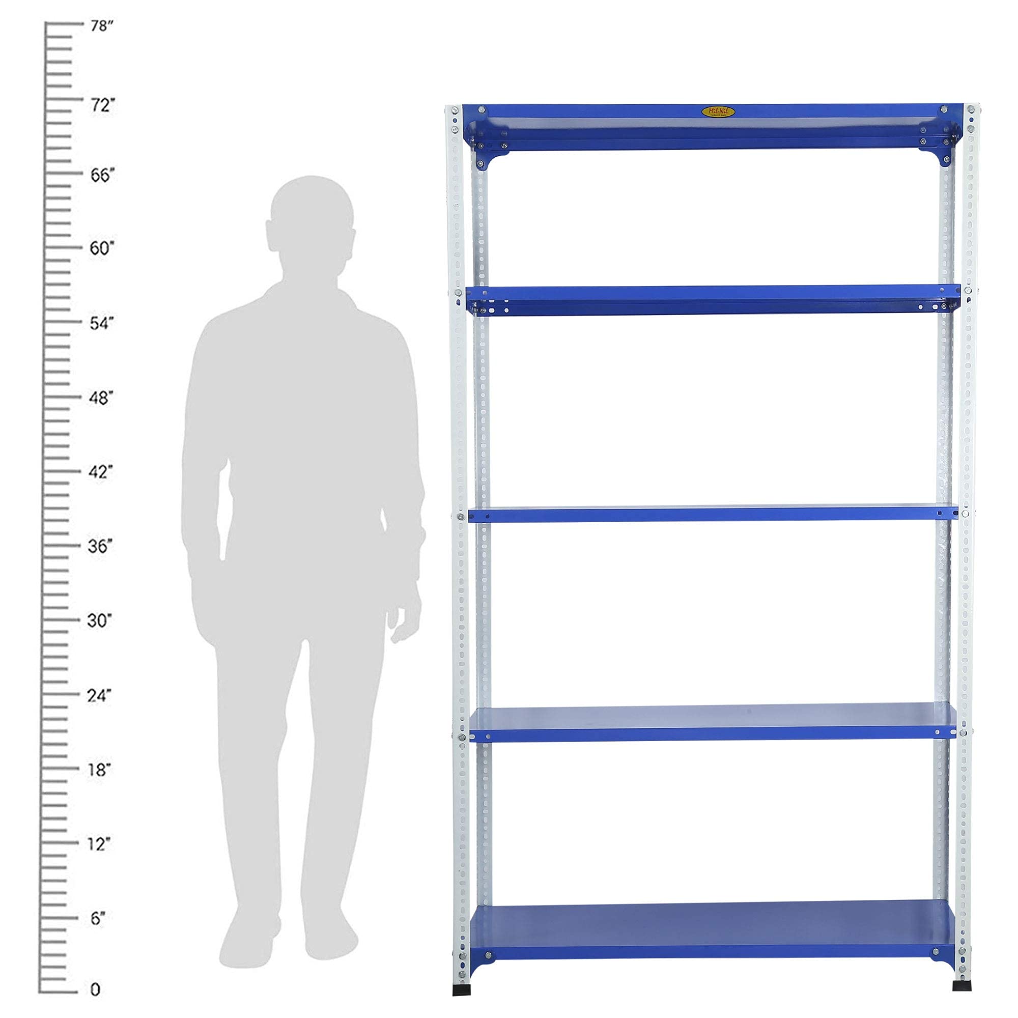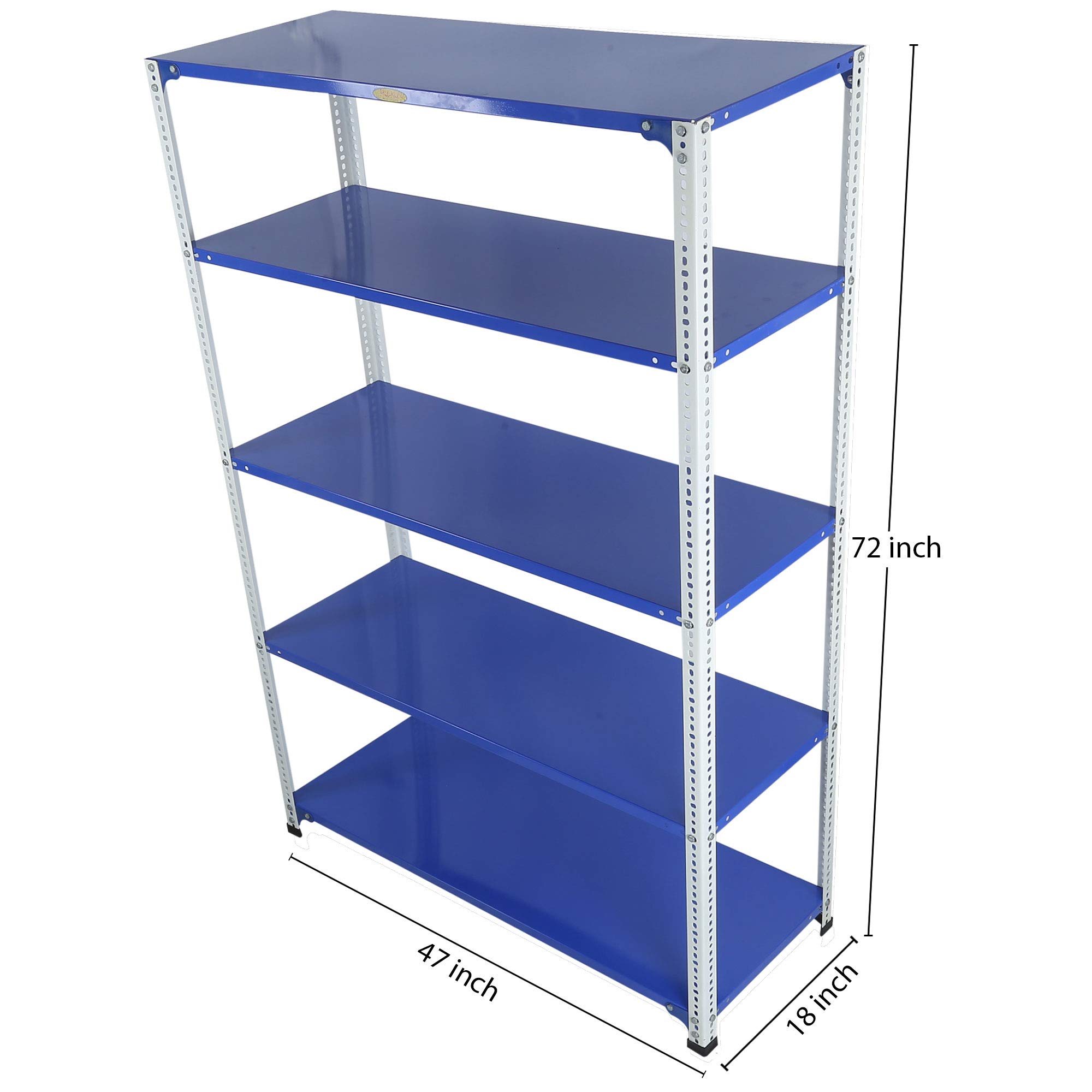 Item NameMil-Nil Prime CRC Sheet 5 Shelf Multipurpose Slotted Angle Rack, 72 x 47 x 18 Inch, 18 Gauge (Blue-White) Powder Coated 14 Gauge Angles