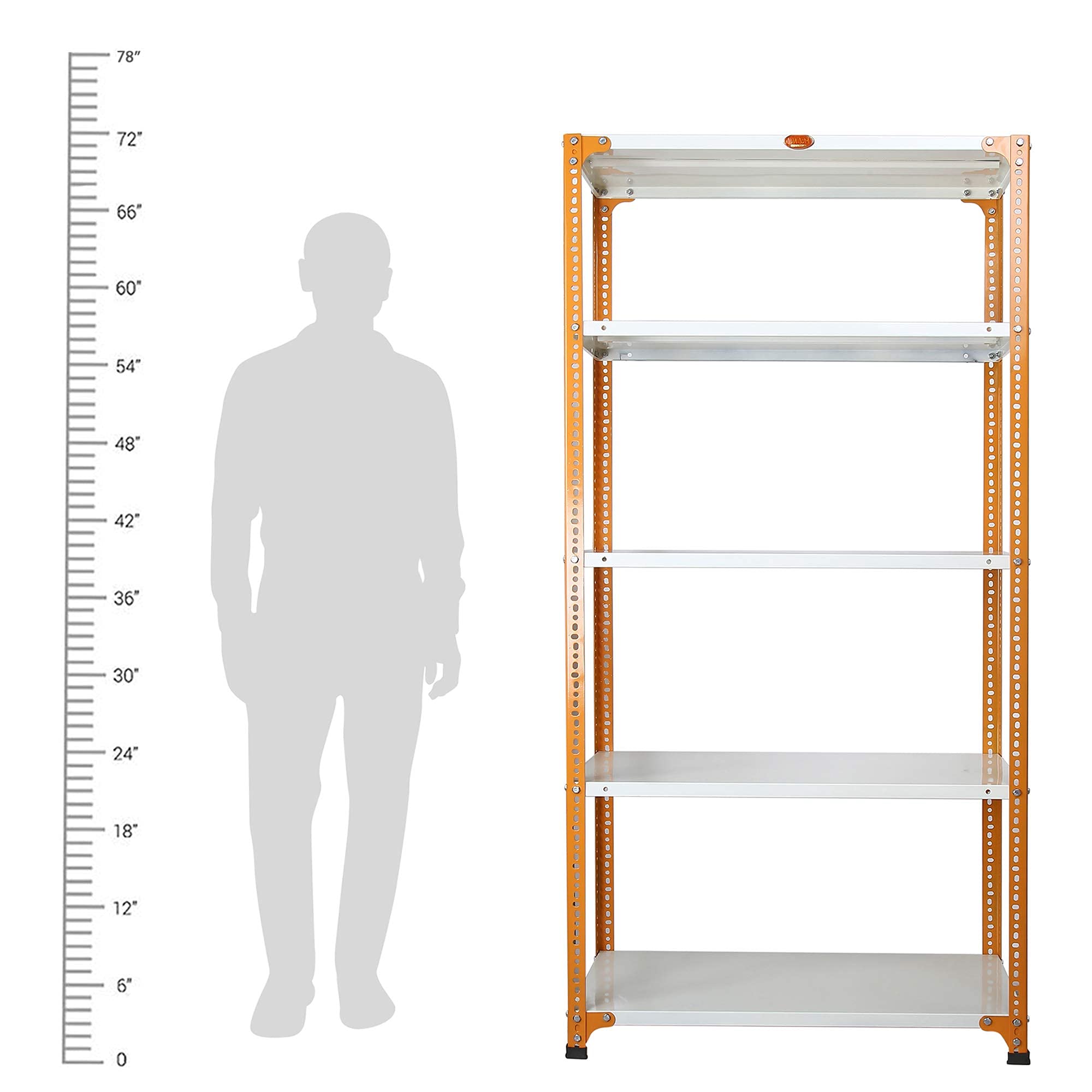 Mil-Nil Prime CRC Sheet 5 Shelf Multipurpose Storage Unit, 72 x 36 x 18 Inch, 18 Gauge (Ivory-Orange) Powder Coated 14 Gauge Angles