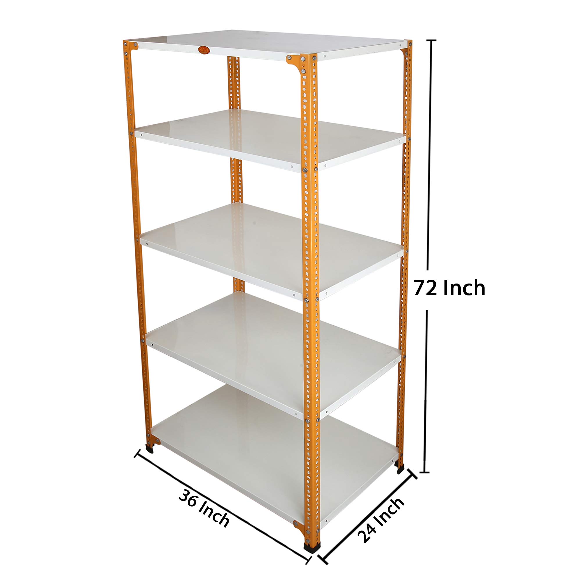 Mil-Nil Prime CRC Sheet 5 Shelf Multipurpose Storage Unit, 72 x 36 x 24 Inch, 18 Gauge (Ivory-Orange) Powder Coated 14 Gauge Angles