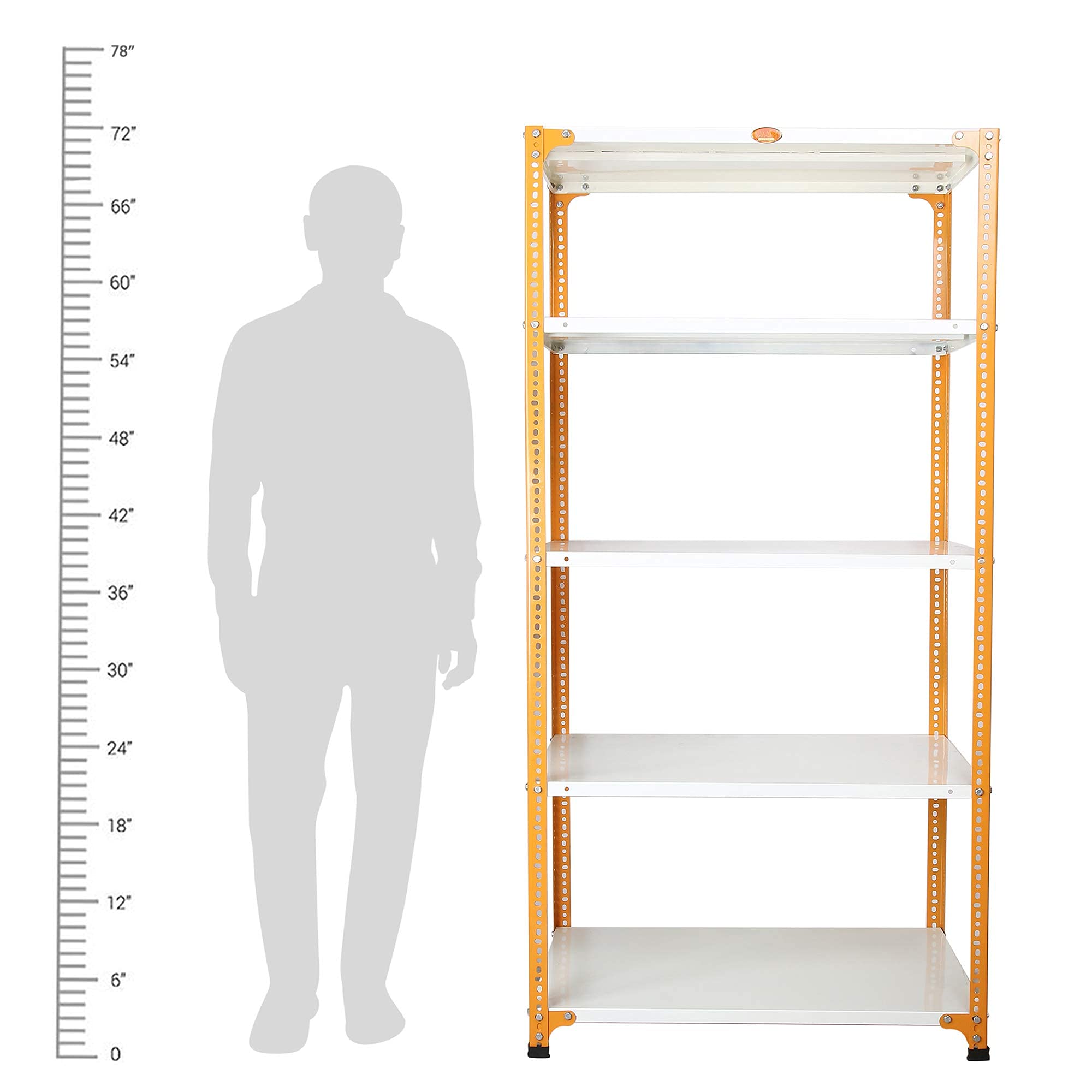Mil-Nil Prime CRC Sheet 5 Shelf Multipurpose Storage Unit, 72 x 36 x 24 Inch, 22 Gauge (Ivory-Orange) Powder Coated 16 Gauge Angles