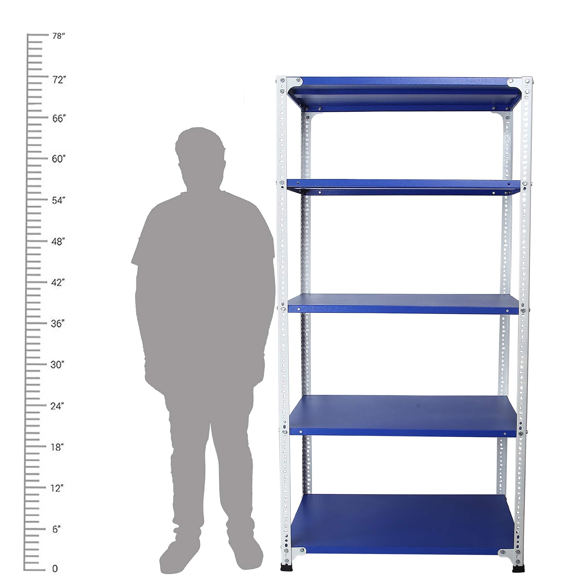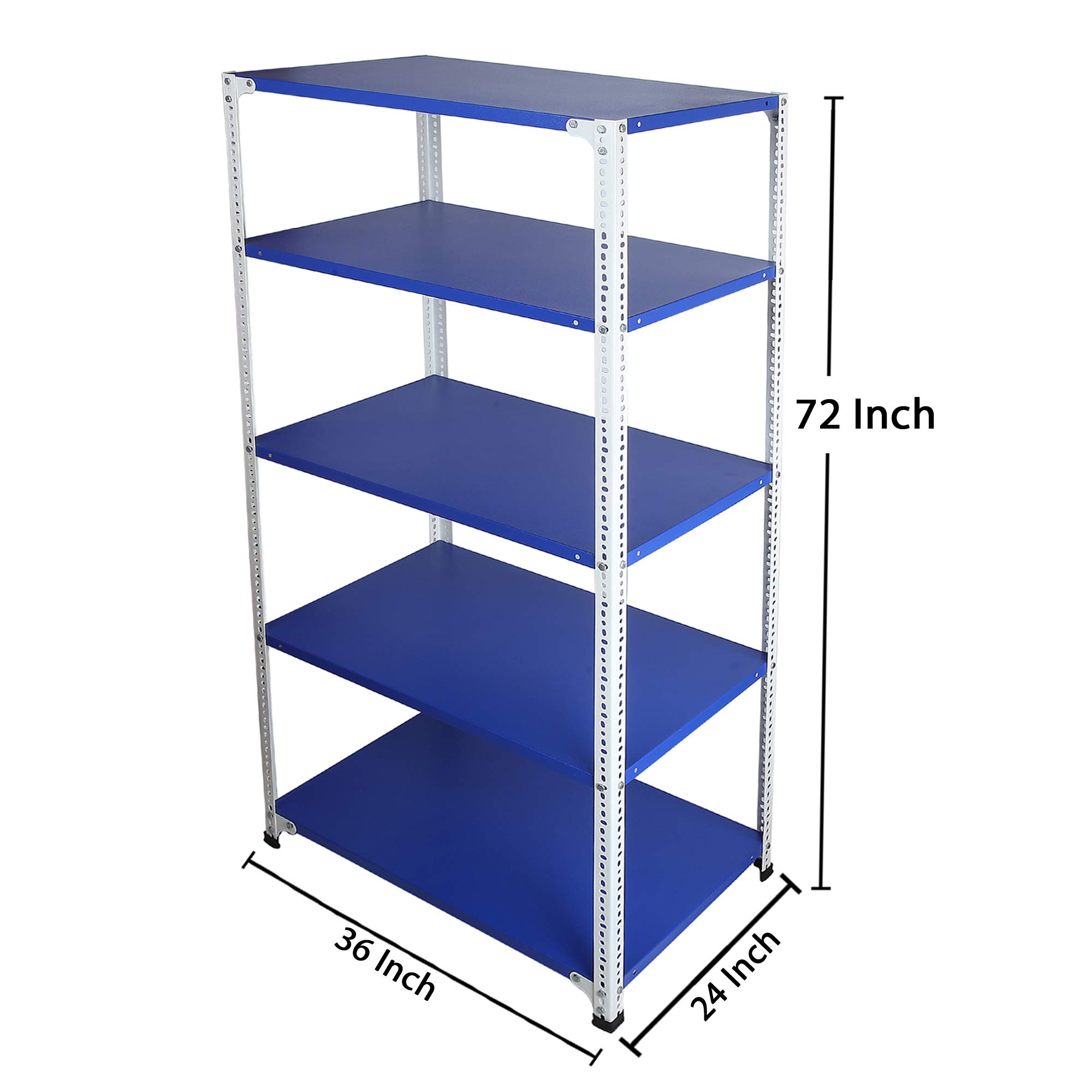 Mil-Nil Prime CRC Sheet 5 Shelf Multiuse Space Saving Rack, 72 x 36 x 24 Inch, 20 Gauge (Blue-White) Powder Coated 14 Gauge Angles