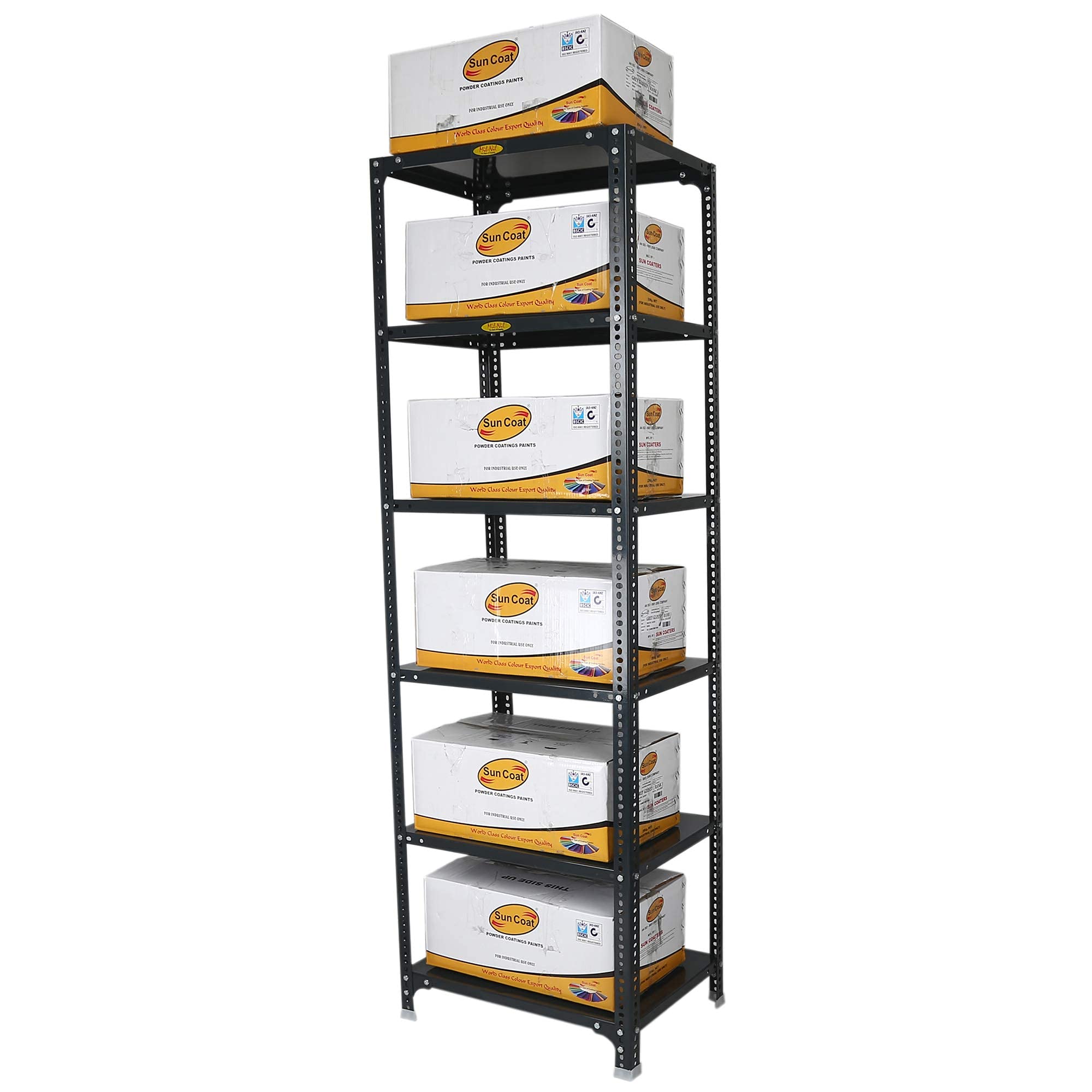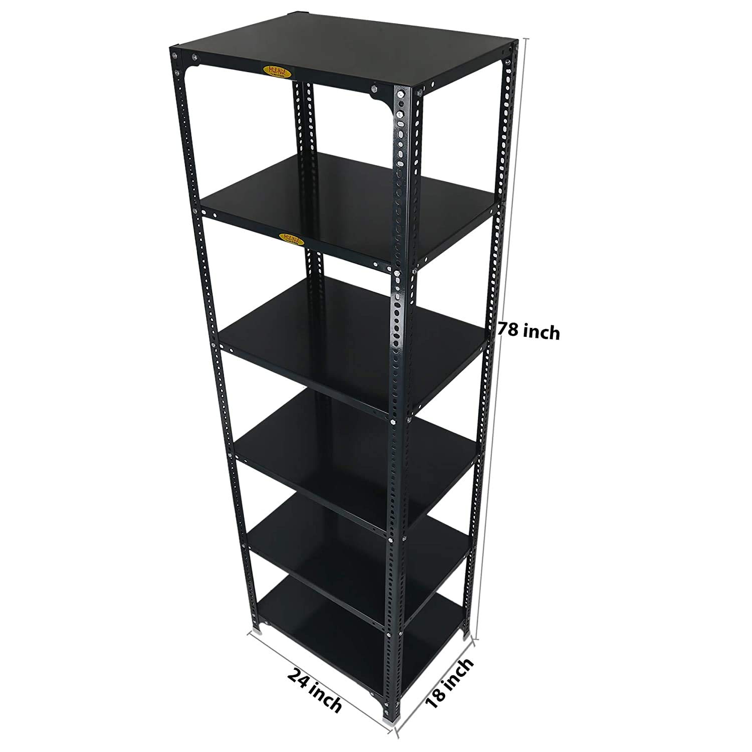 Item NameMil-Nil Prime CRC Sheet 6 Shelf Multipurpose Slotted Angle Rack, 78 x 24 x 18 Inch, 24 Gauge (Grey) 16 Gauge Angles