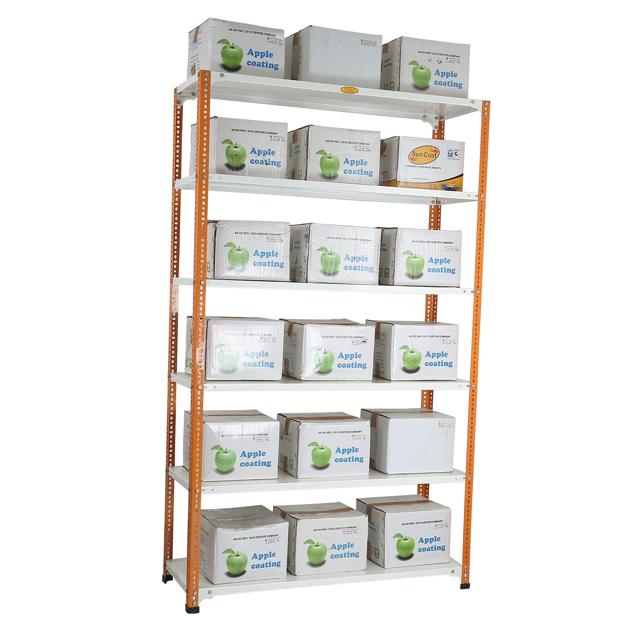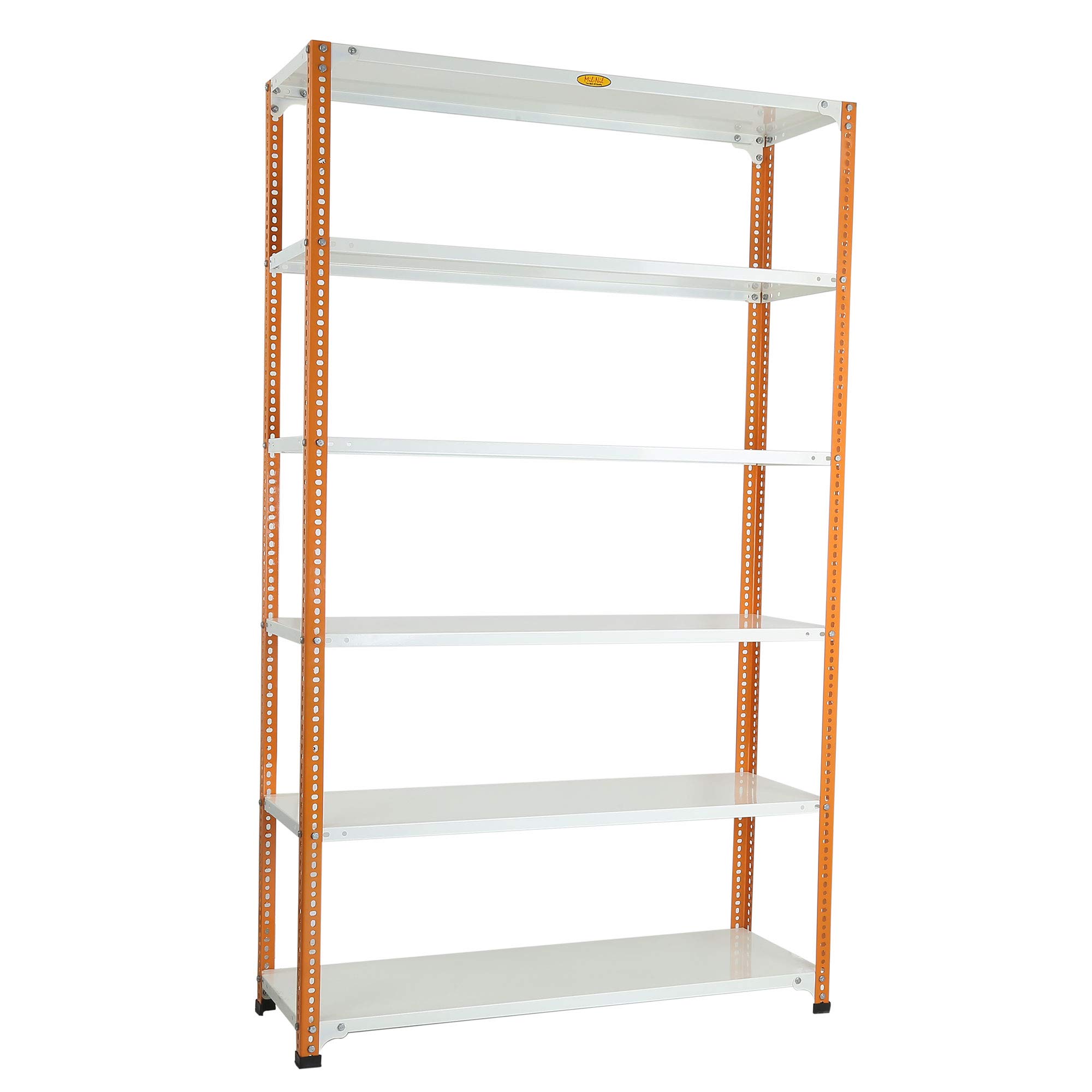 Item NameMil-Nil Prime CRC Sheet 6 Shelf Multipurpose Slotted Angle Rack, 78 x 47 x 15 Inch, 18 Gauge (Orange/Ivory) Powder Coated 14 Gauge Angles