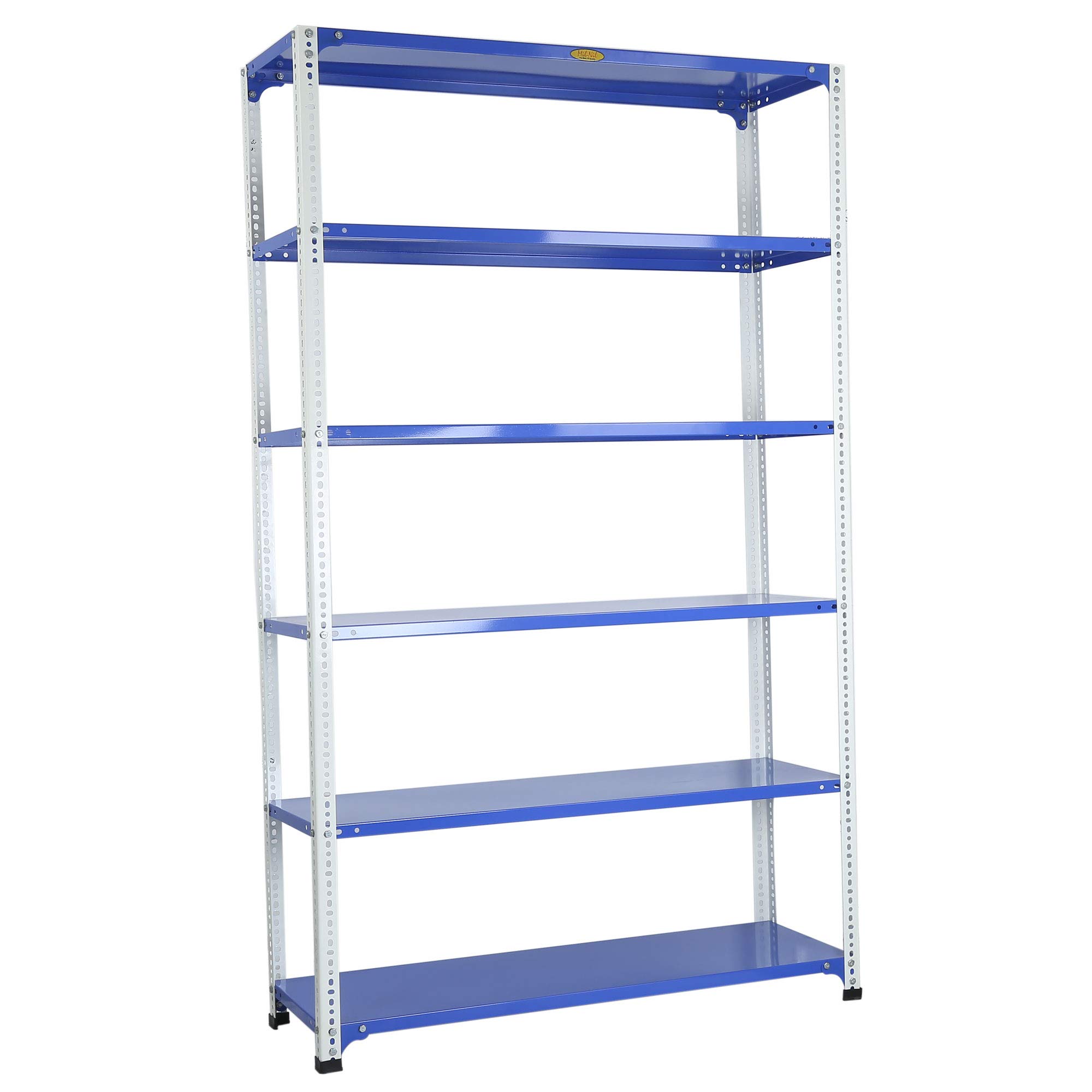 Item NameMil-Nil Prime CRC Sheet 6 Shelf Multipurpose Slotted Angle Rack, 78 x 47 x 15 Inch, 20 Gauge (Blue-White) Powder Coated 14 Gauge Angles