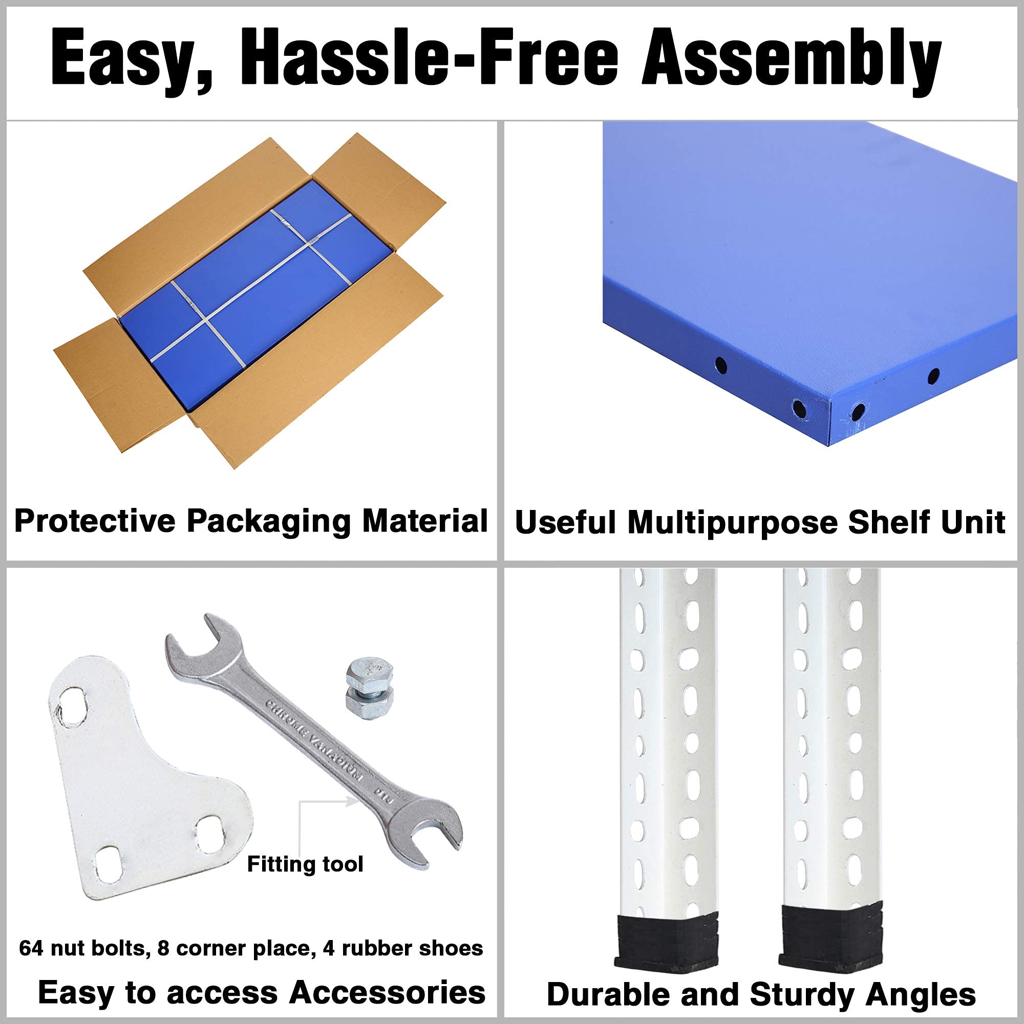 Item NameMil-Nil Prime CRC Sheet 6 Shelf Multiuse Space Saving Rack, 78 x 36 x 24 Inch, 22 Gauge (Blue-White) Powder Coated 16 Gauge Angles
