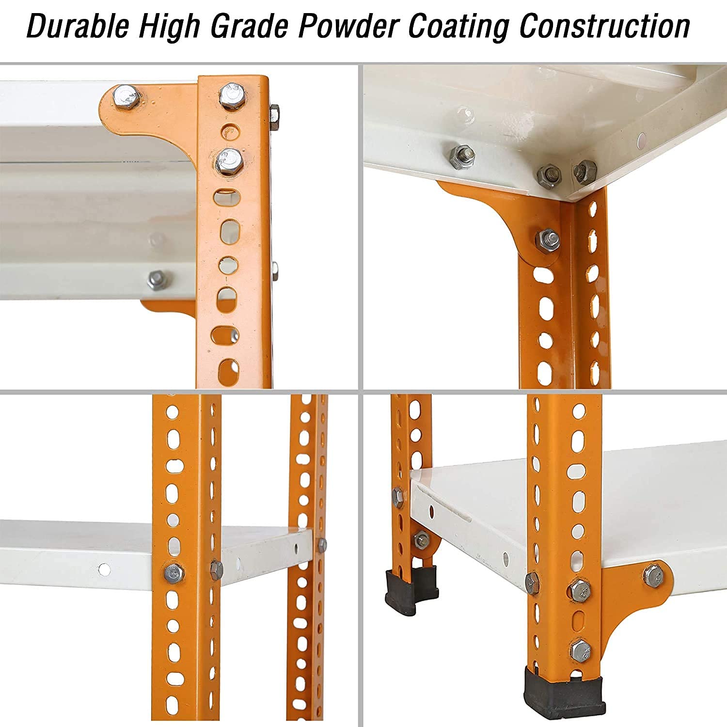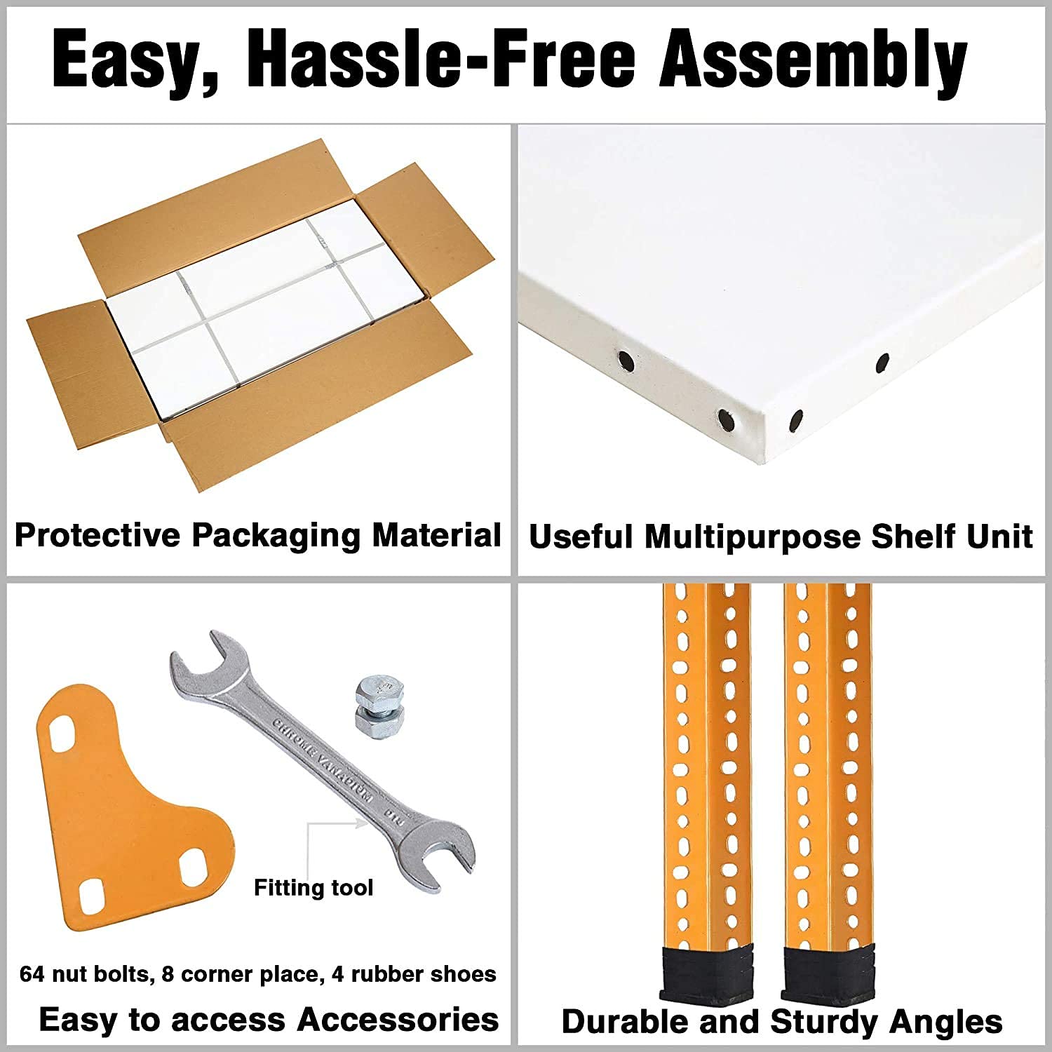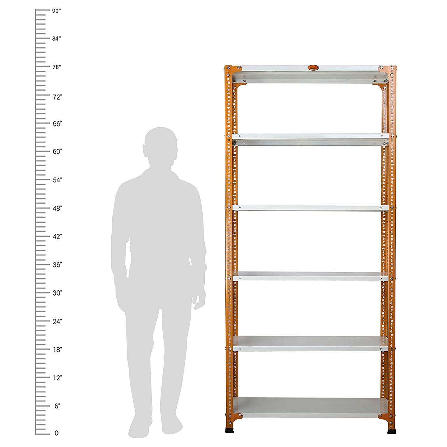 Item NameMil-Nil Prime CRC Sheet 6 Shelf Multiuse Storage Unit, 78 x 36 x 12 Inch, 18 Gauge (Ivory-Orange) 14 Gauge Angles