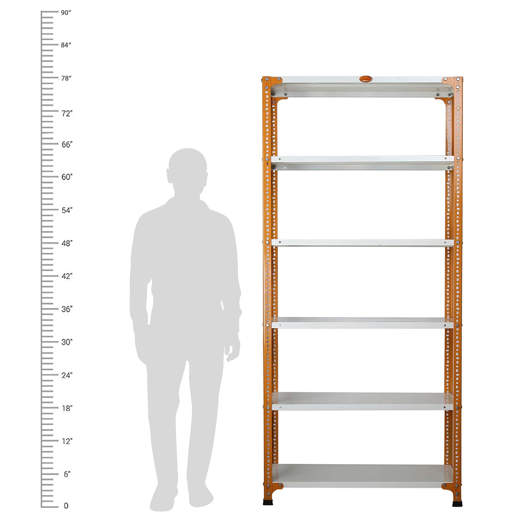 Item NameMil-Nil Prime CRC Sheet 6 Shelf Multiuse Storage Unit, 78 x 36 x 12 Inch, 20 Gauge (Ivory-Orange) Powder Coated 14 Gauge Angles