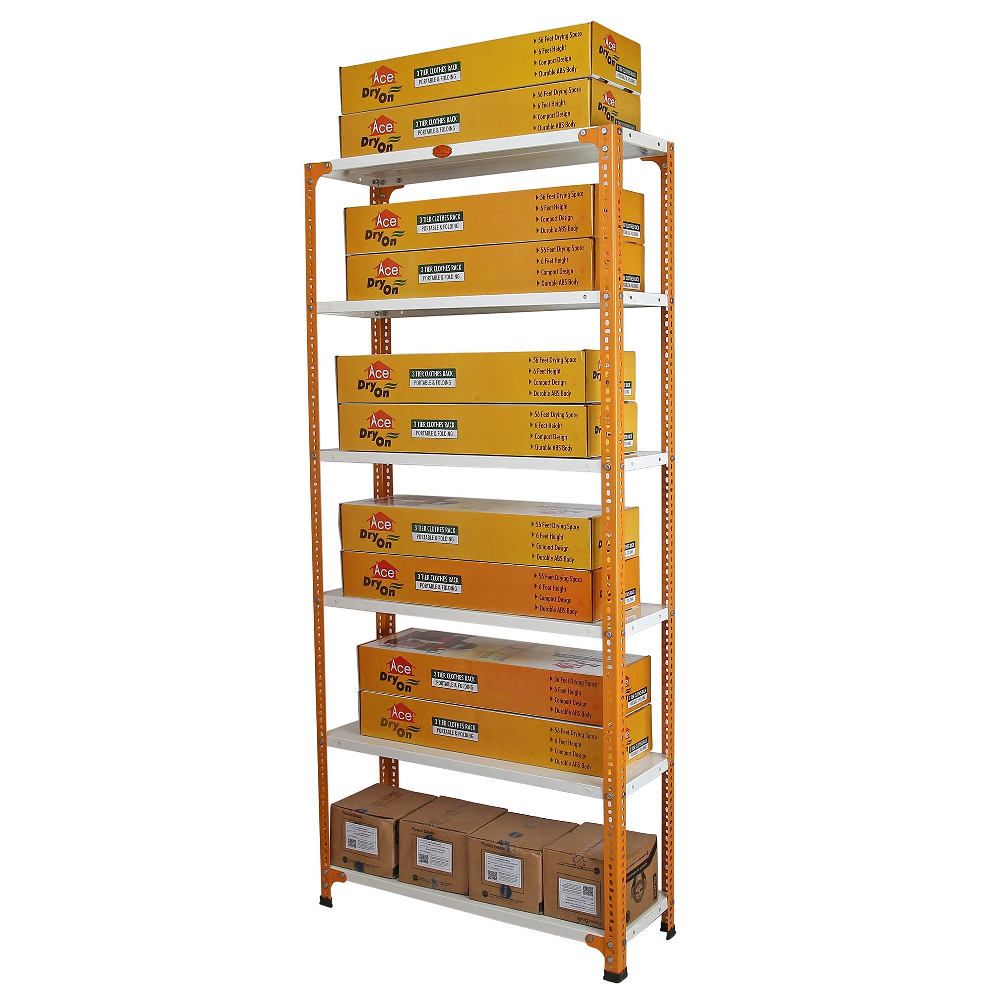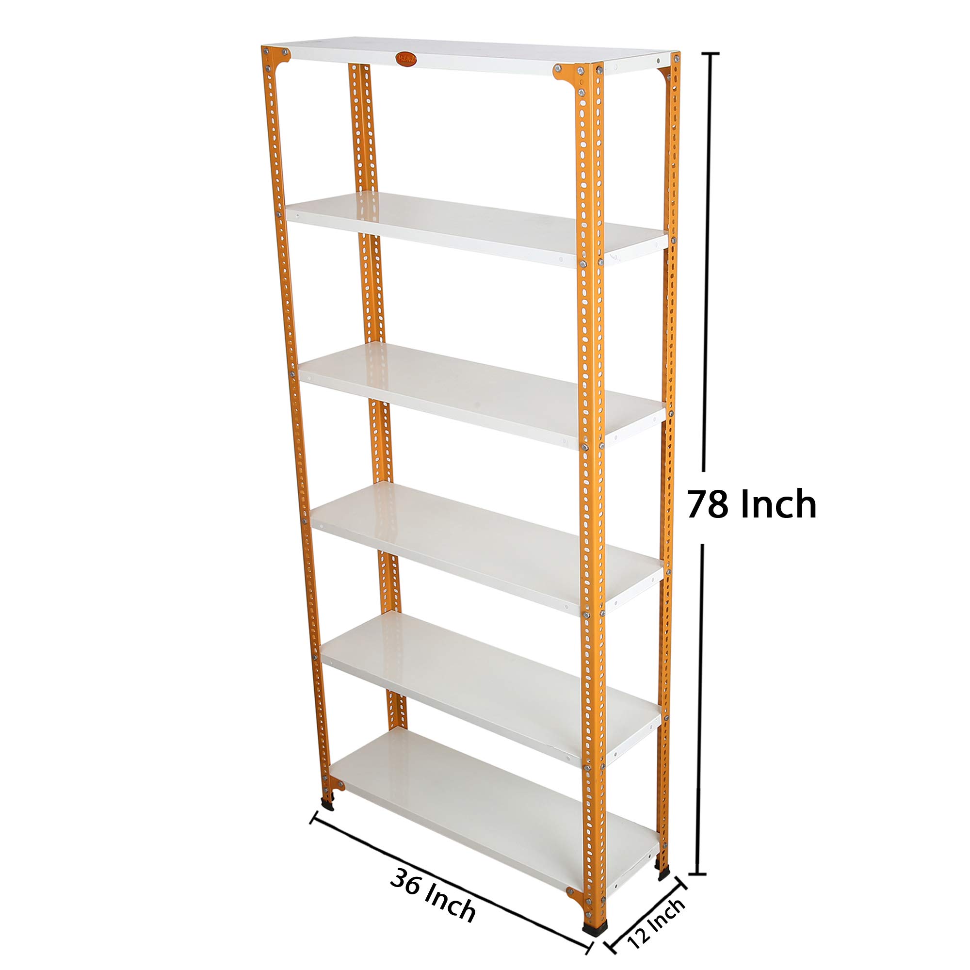 Item NameMil-Nil Prime CRC Sheet 6 Shelf Multiuse Storage Unit, 78 x 36 x 12 Inch, 22 Gauge (Ivory-Orange) Powder Coated 16 Gauge Angles