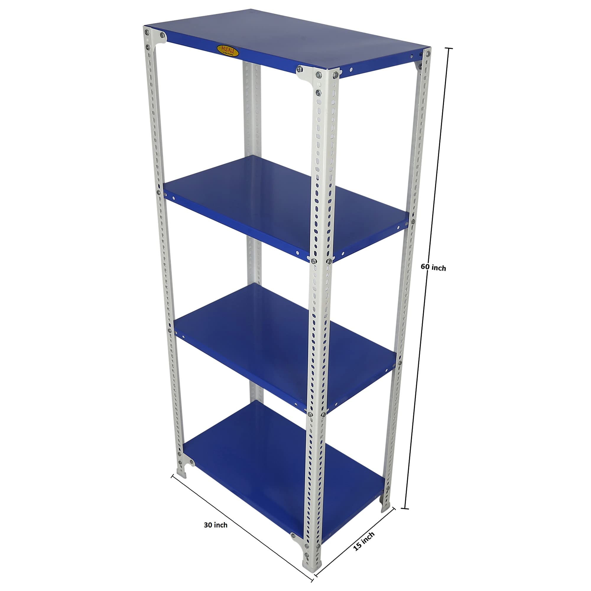 Item NameMil-Nil Prime CRC Sheet 60X30X15 Inch Multipurpose Storage, Adjustable Shelf, Slotted Angle Rack with 4 Shelves 22 Gauge_Blue/White 16 Gauge Angles