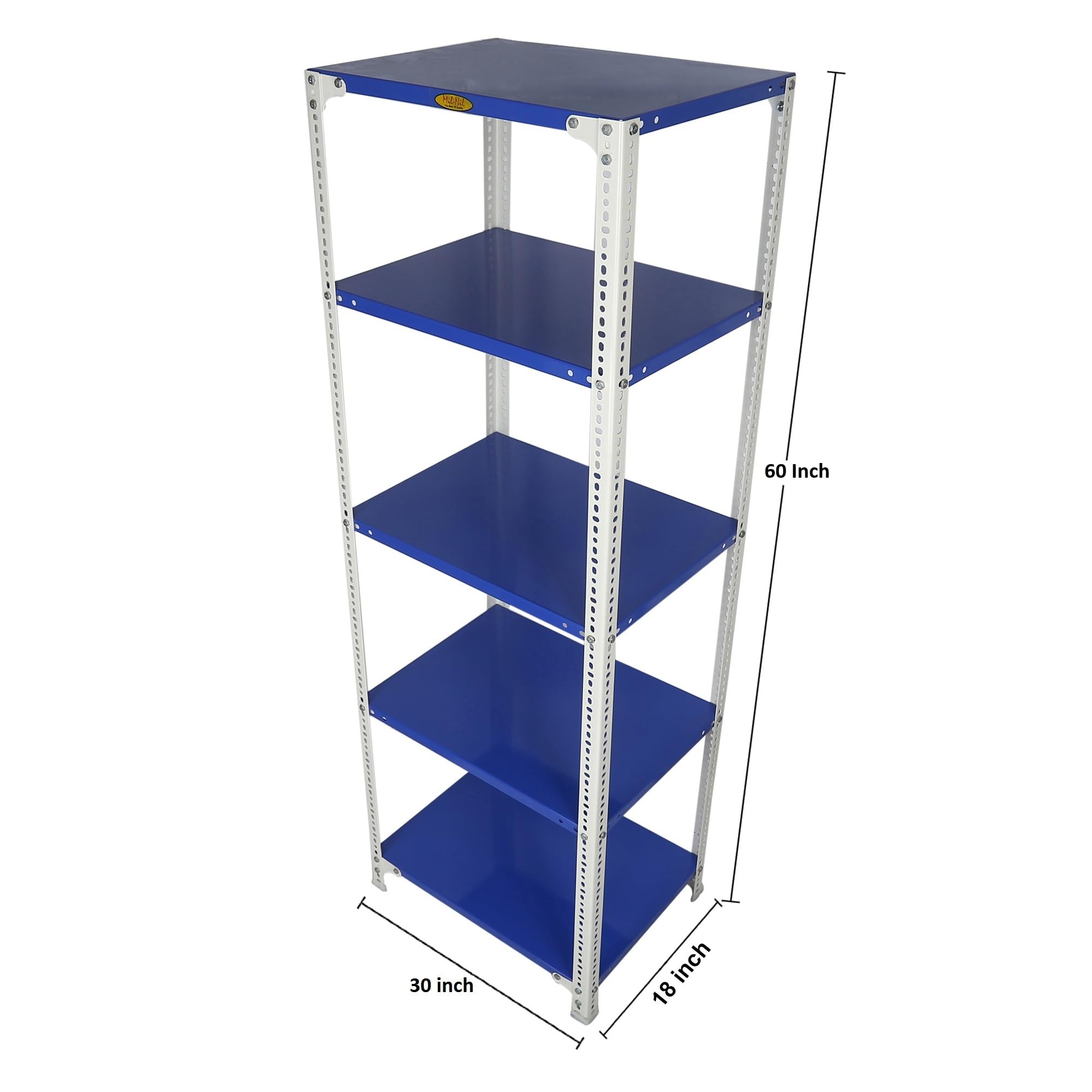 Item NameMil-Nil Prime CRC Sheet 60X30X18 Inch Multipurpose Storage, Adjustable Shelf, Slotted Angle Rack with 5 Shelves 22 Gauge_Blue/White 16 Gauge Angles