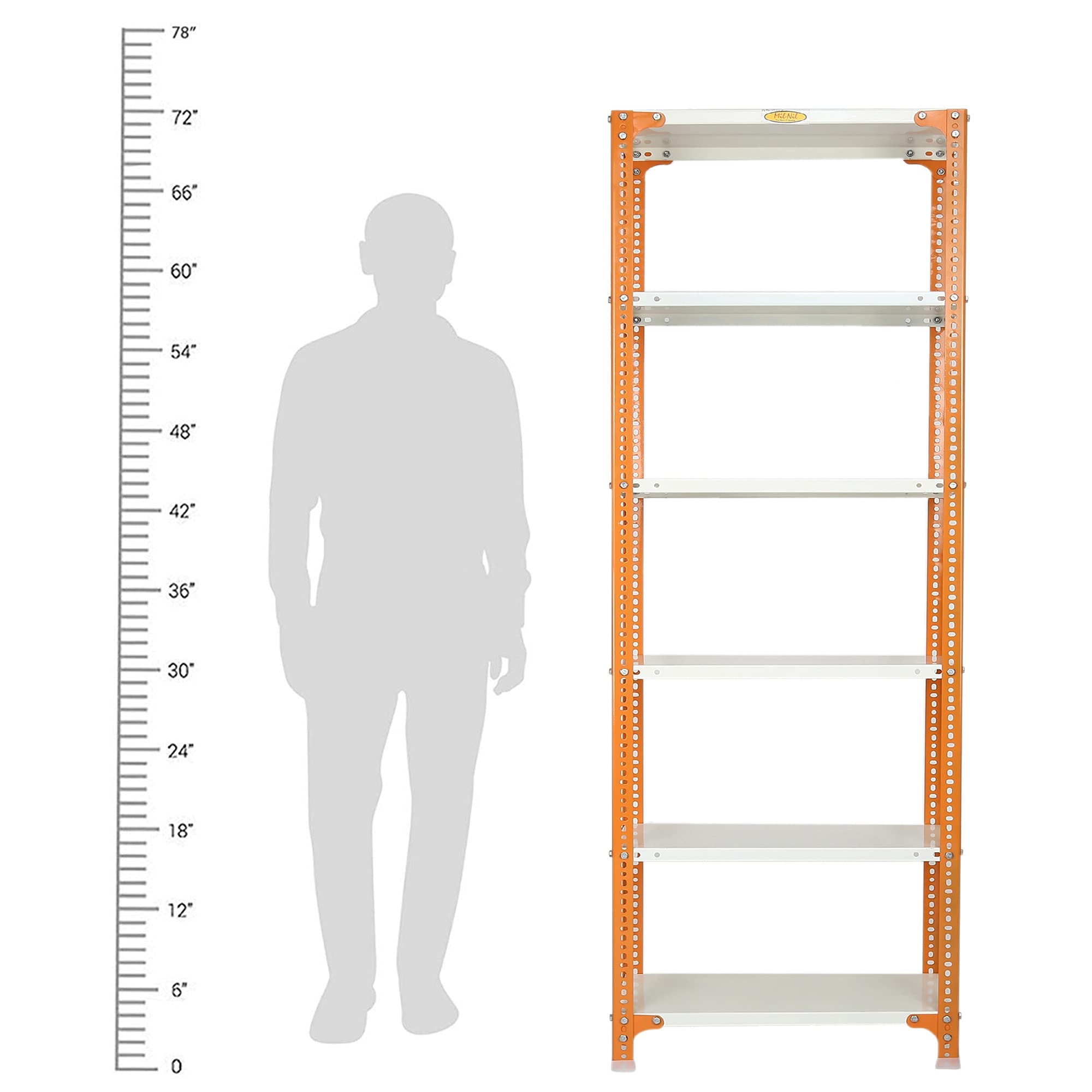 Item NameMil-Nil Prime CRC Sheet 72X24X12 Inch Multipurpose Storage, Adjustable Shelf, Slotted Angle Rack with 6 Shelves 24 Gauge_Orange/Ivory 16 Gauge Angles