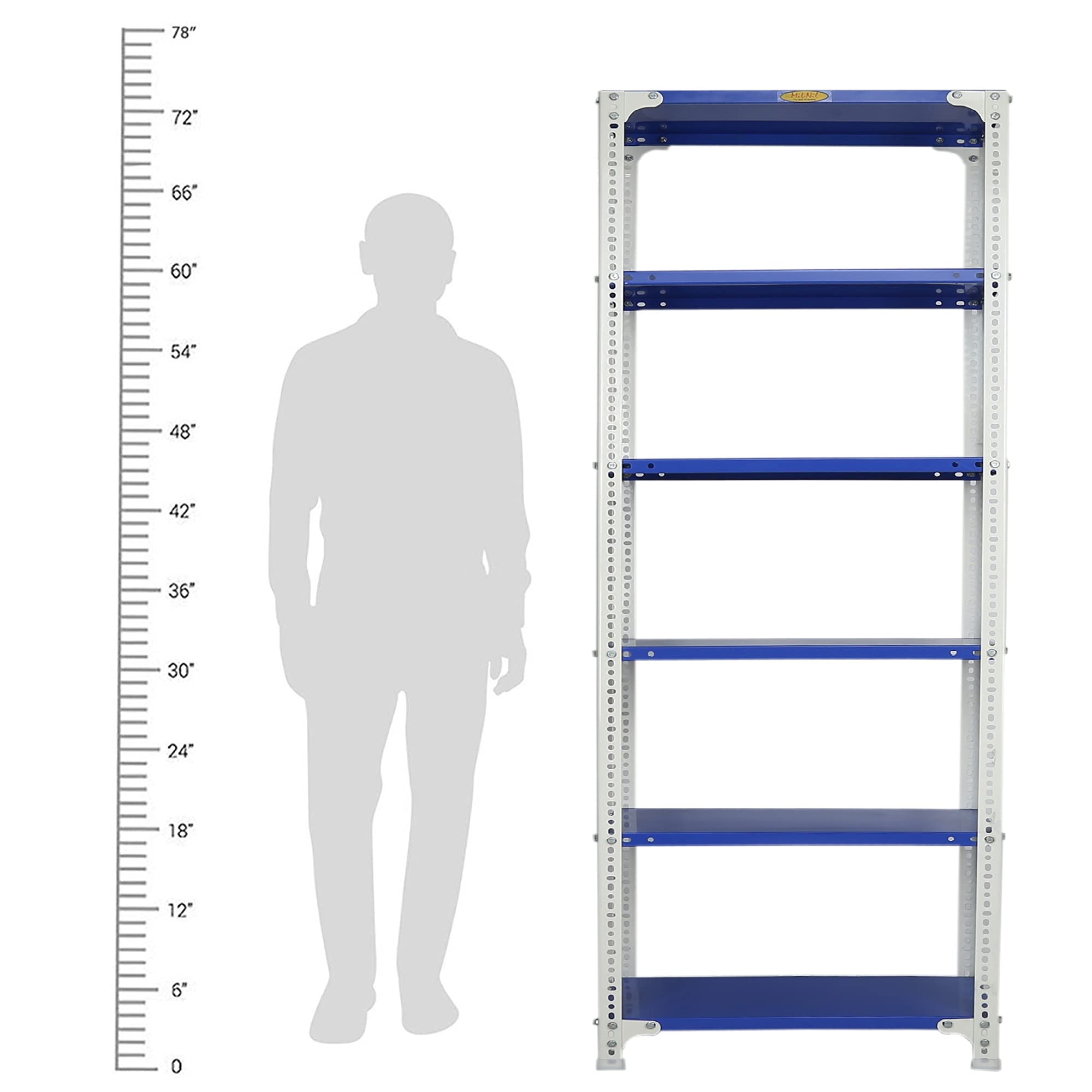 Item NameMil-Nil Prime CRC Sheet 72X30X12 Inch Multipurpose Storage, Adjustable Shelf, Slotted Angle Rack with 6 Shelves 22 Gauge_Blue/White 16 Gauge Angles