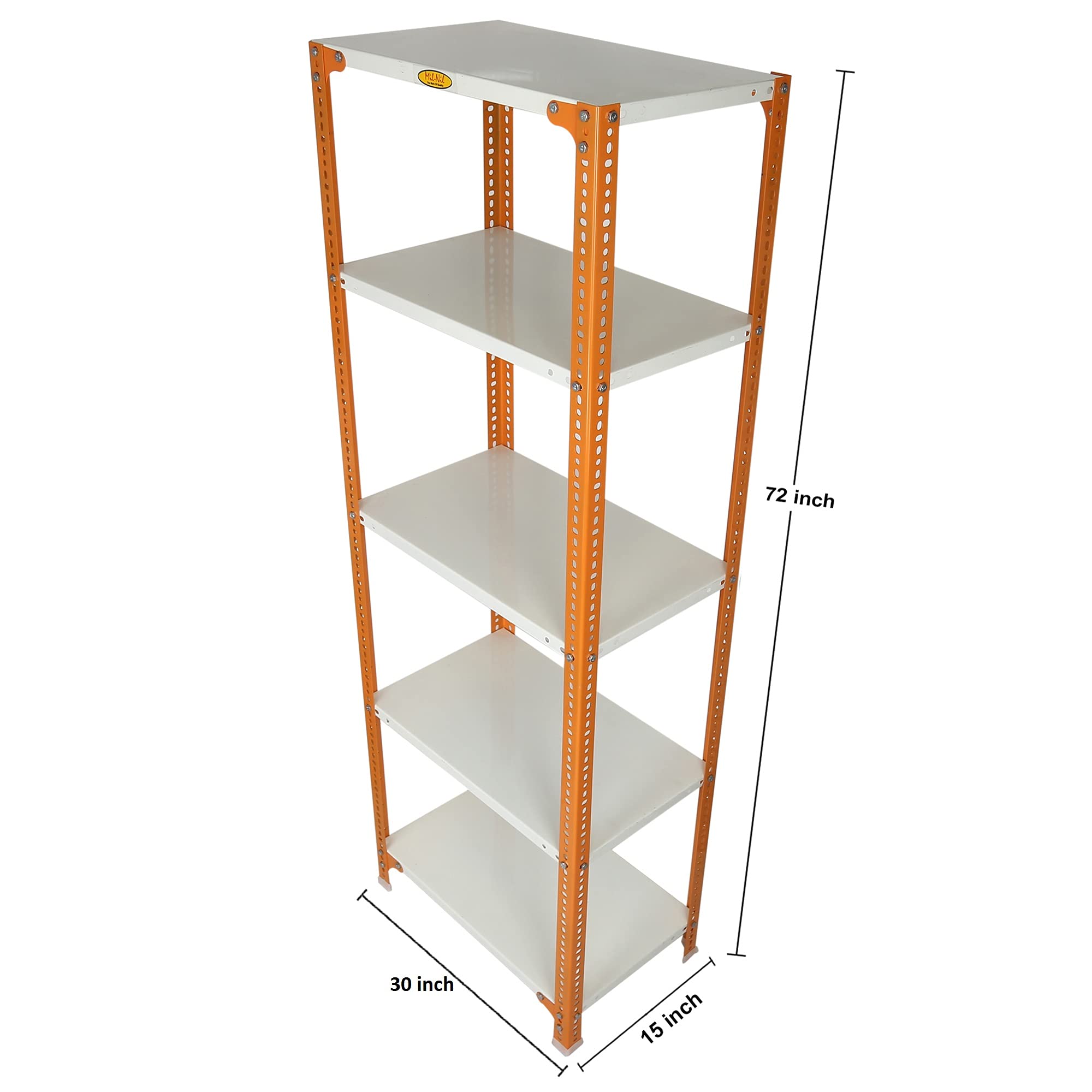 Item NameMil-Nil Prime CRC Sheet 72X30X15 Inch Multipurpose Storage, Adjustable Shelf, Slotted Angle Rack with 5 Shelves 22 Gauge_Orange/Ivory 16 Gauge Angles