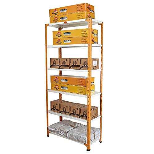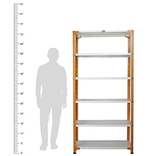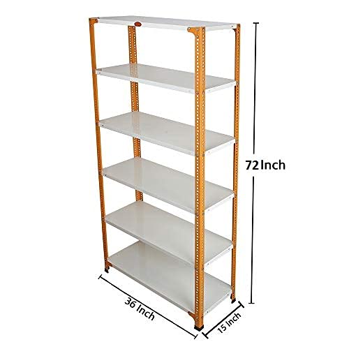 Mil-Nil Prime CRC Sheet 72X36X15 Inch Multipurpose Storage, Adjustable Shelf, Slotted Angle Rack with 6 Shelves 18 Gauge_Orange/Ivory 14 Gauge Angles
