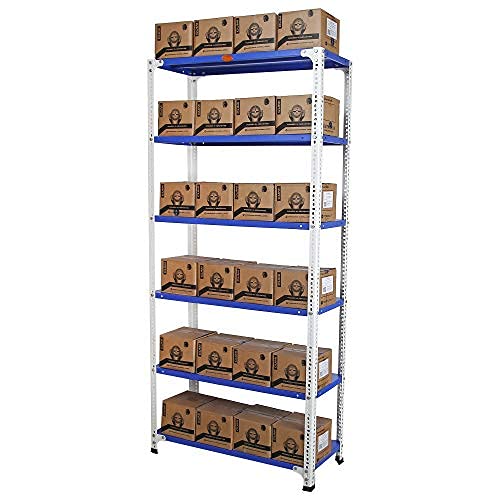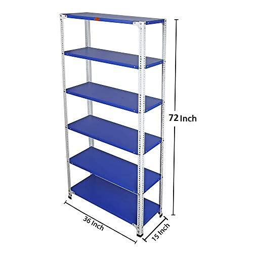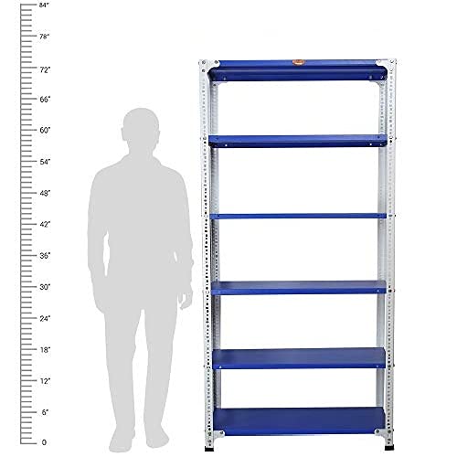 Mil-Nil Prime CRC Sheet 72X36X15 Inch Multipurpose Storage, Adjustable Shelf, Slotted Angle Rack with 6 Shelves 20 Gauge_Blue/White 14 Gauge Angles