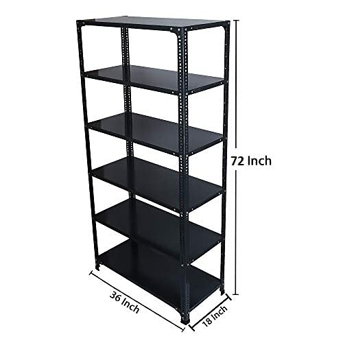 Mil-Nil Prime CRC Sheet 72X36X18 Inch Multipurpose Storage, Adjustable Shelf, Slotted Angle Rack with 6 Shelves 20 Gauge_Grey 14 Gauge Angles