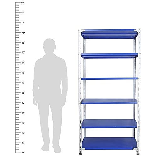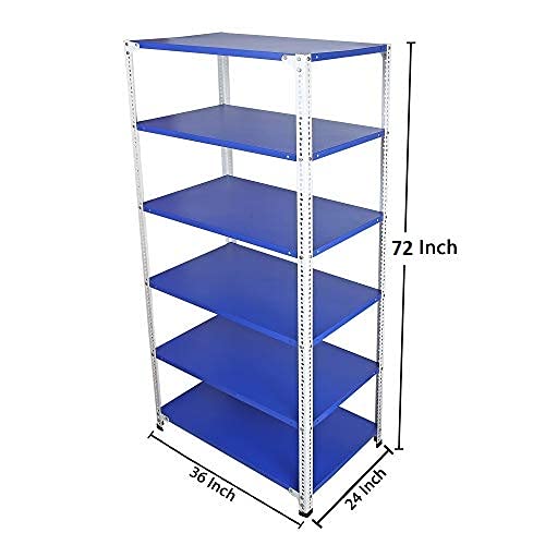 Mil-Nil Prime CRC Sheet 72X36X24 Inch Multipurpose Storage, Adjustable Shelf, Slotted Angle Rack with 6 Shelves 22 Gauge_Blue/White 16 Gauge Angles