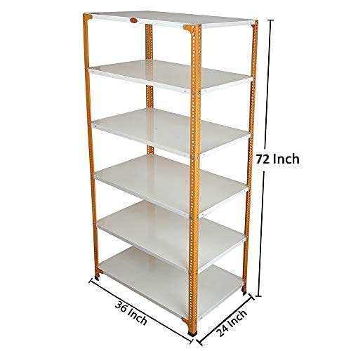 Item NameMil-Nil Prime CRC Sheet 72X36X24 Inch Multipurpose Storage, Adjustable Shelf, Slotted Angle Rack with 6 Shelves 22 Gauge_Orange/Ivory 16 Gauge Angles