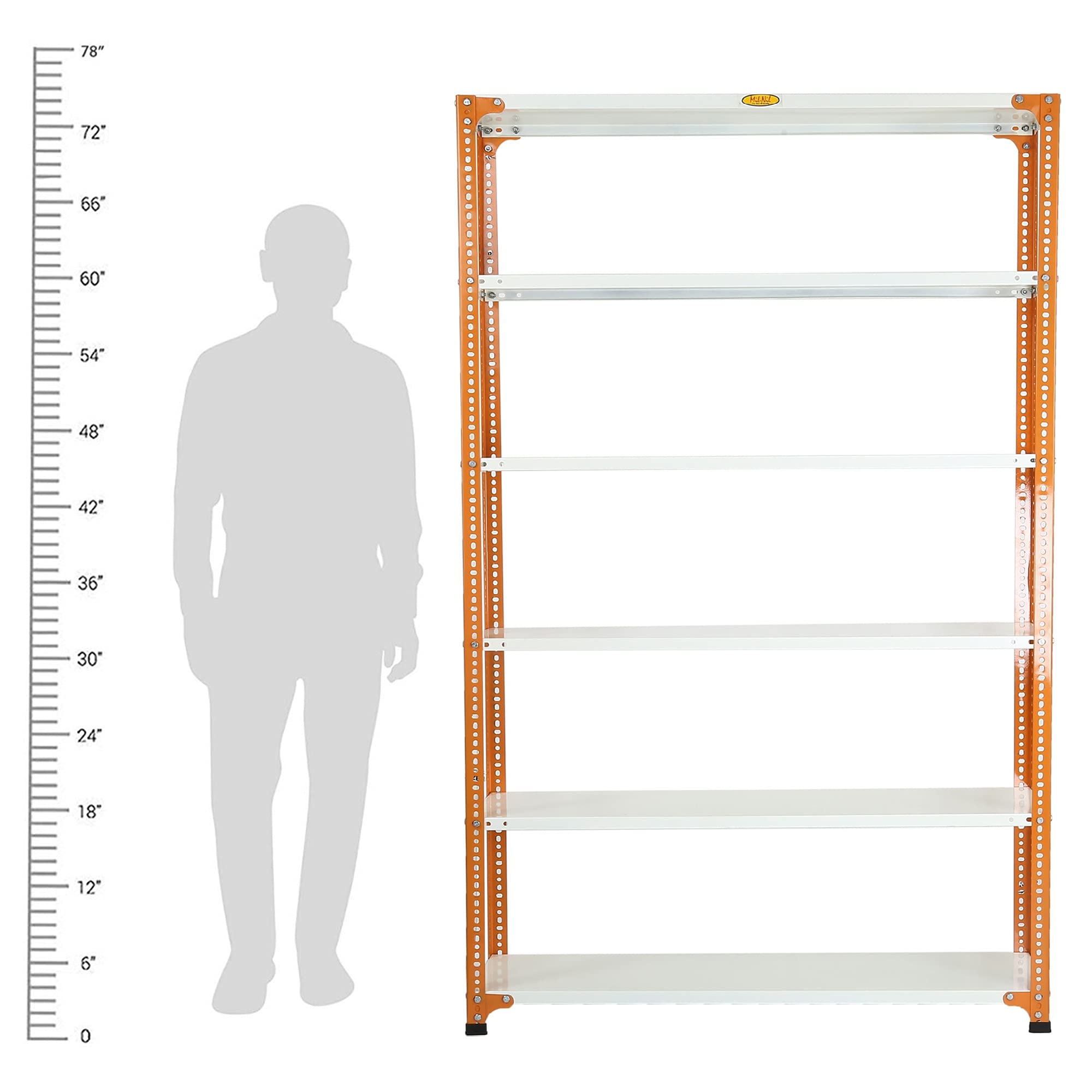 Item NameMil-Nil Prime CRC Sheet 72X47X12 Inch Multipurpose Storage, Adjustable Shelf, Slotted Angle Rack with 6 Shelves 24 Gauge_Orange/Ivory 16 Gauge Angles