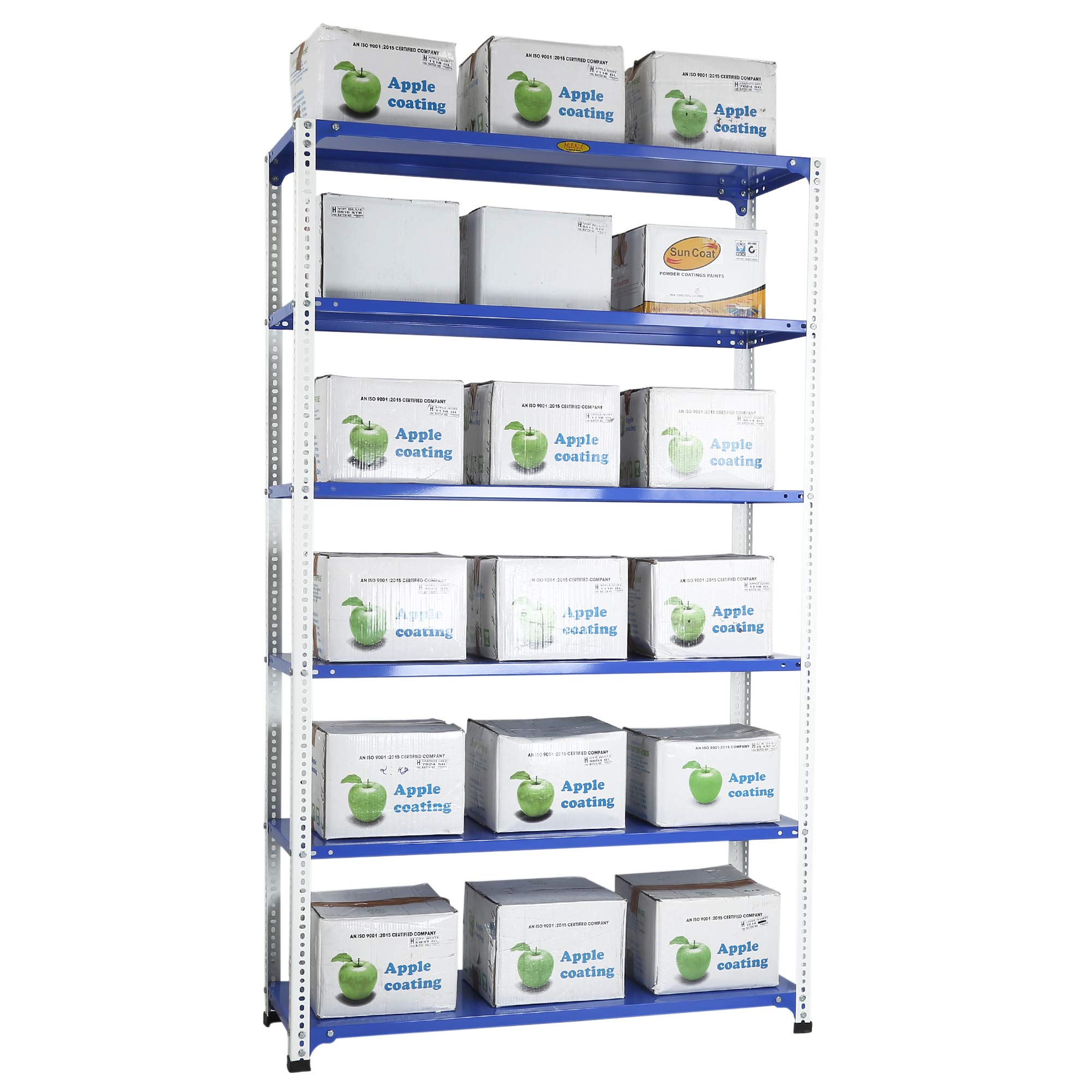 Item NameMil-Nil Prime CRC Sheet 72X47X15 Inch Multipurpose Storage, Adjustable Shelf, Slotted Angle Rack with 6 Shelves 22 Gauge_Blue/White 16 Gauge Angles