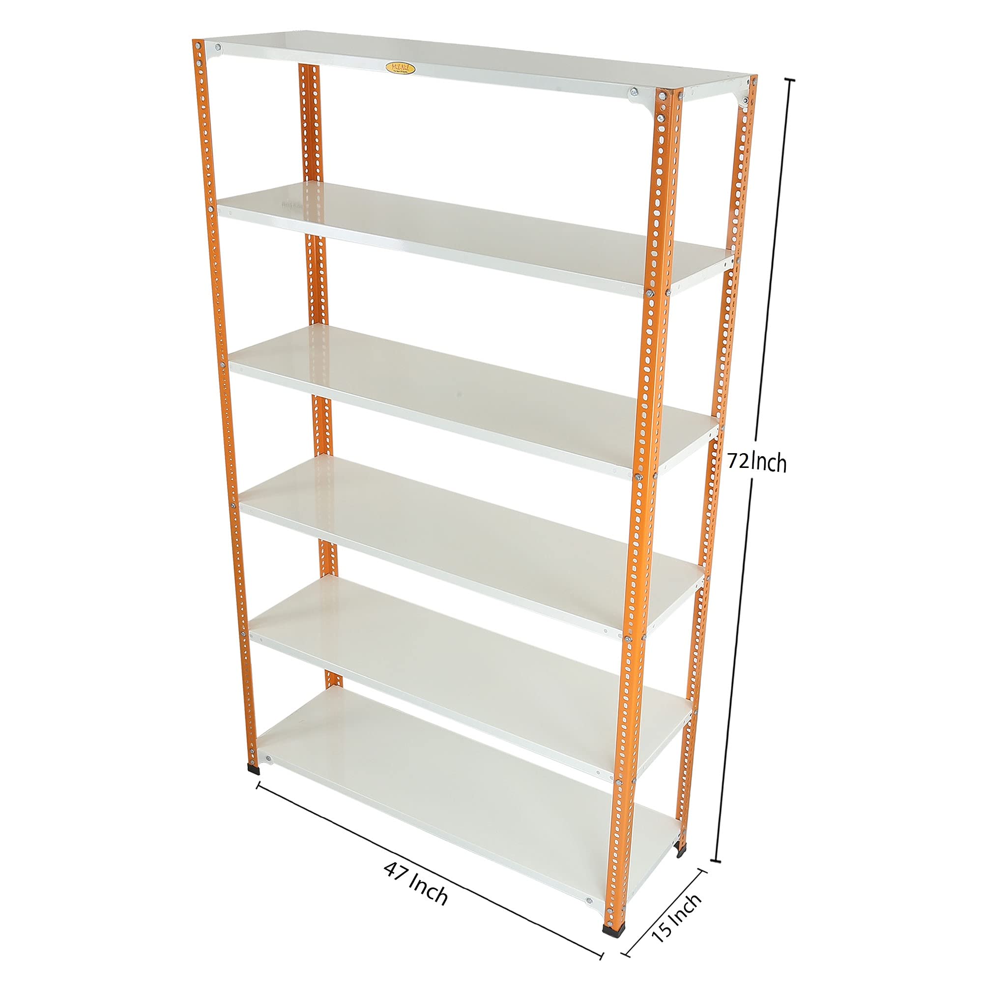 Item NameMil-Nil Prime CRC Sheet 72X47X15 Inch Multipurpose Storage, Adjustable Shelf, Slotted Angle Rack with 6 Shelves 22 Gauge_Orange/Ivory 16 Gauge Angles