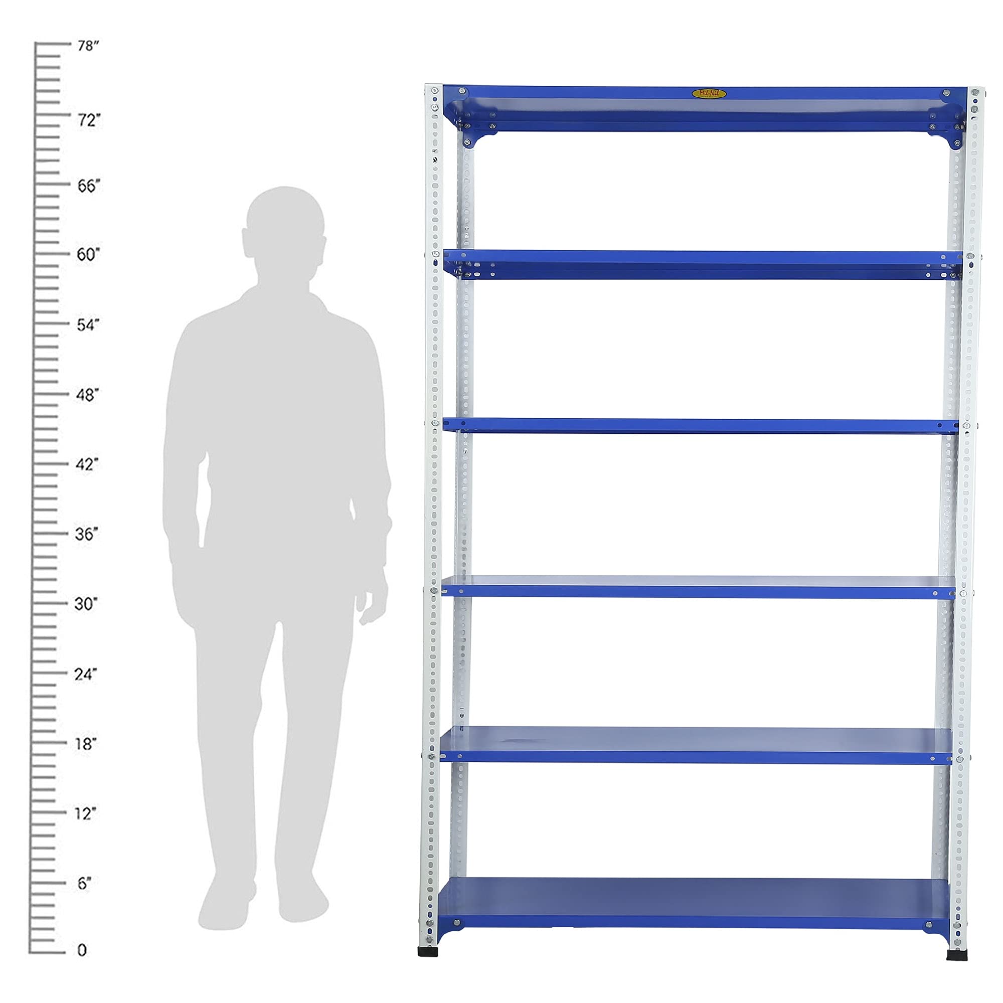 Item NameMil-Nil Prime CRC Sheet 72X47X18 Inch Multipurpose Storage, Adjustable Shelf, Slotted Angle Rack with 6 Shelves 20 Gauge_Blue/White 14 Gauge Angles
