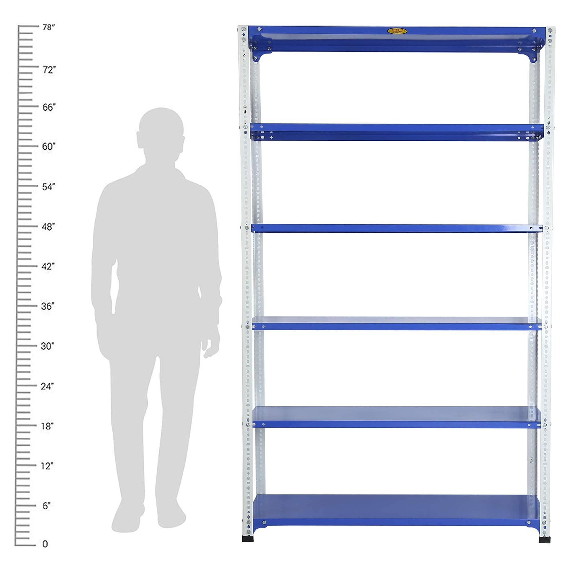 Item NameMil-Nil Prime CRC Sheet 78 x 47 x 15 Inch Multipurpose Slotted Angle Rack with 6 Shelves 22 Gauge (Blue) 16 Gauge Angles