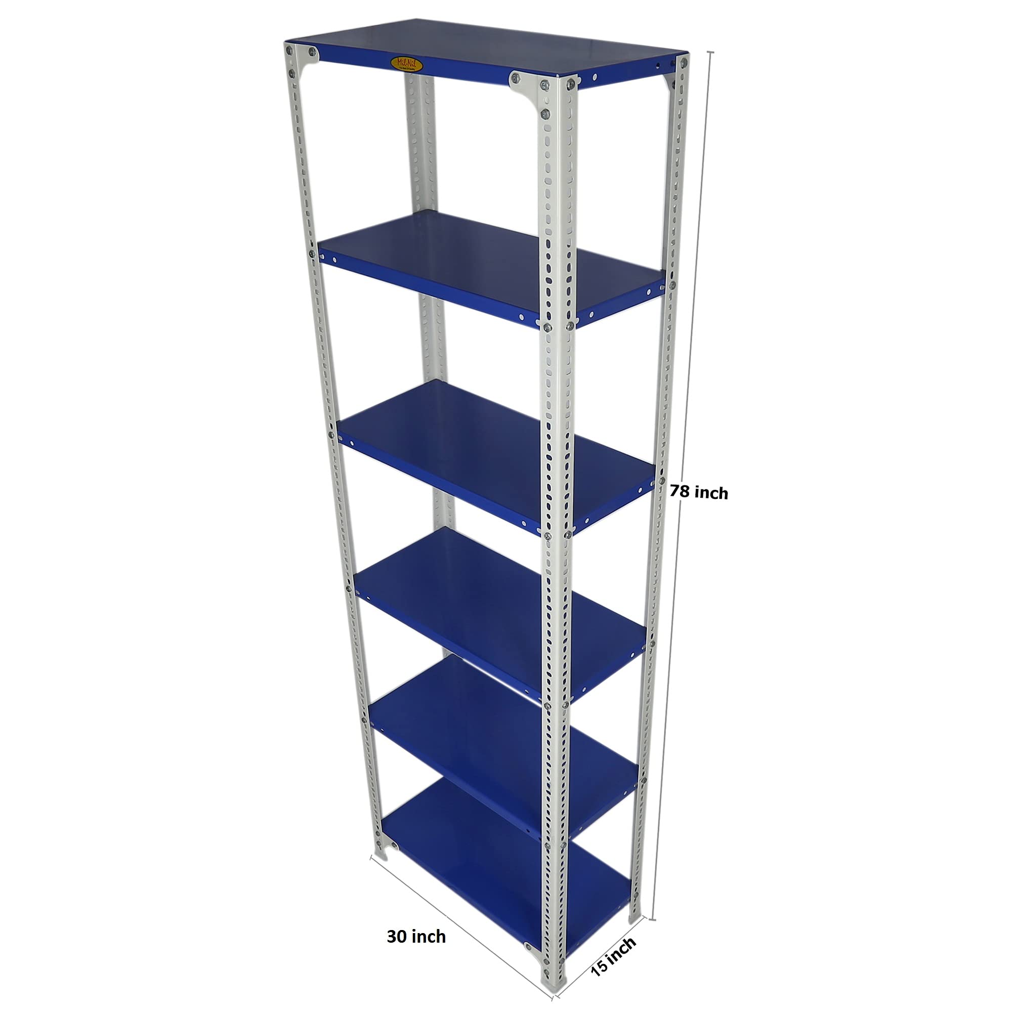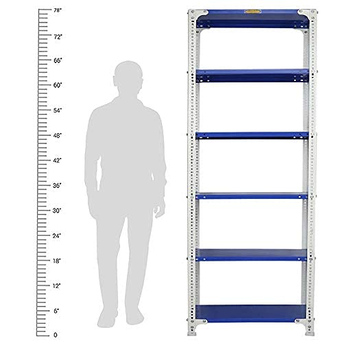 Item NameMil-Nil Prime CRC Sheet 78X30X15 Inch Multipurpose Storage, Adjustable Shelf, Slotted Angle Rack with 6 Shelves 24 Gauge_Blue/White 16 Gauge Angles