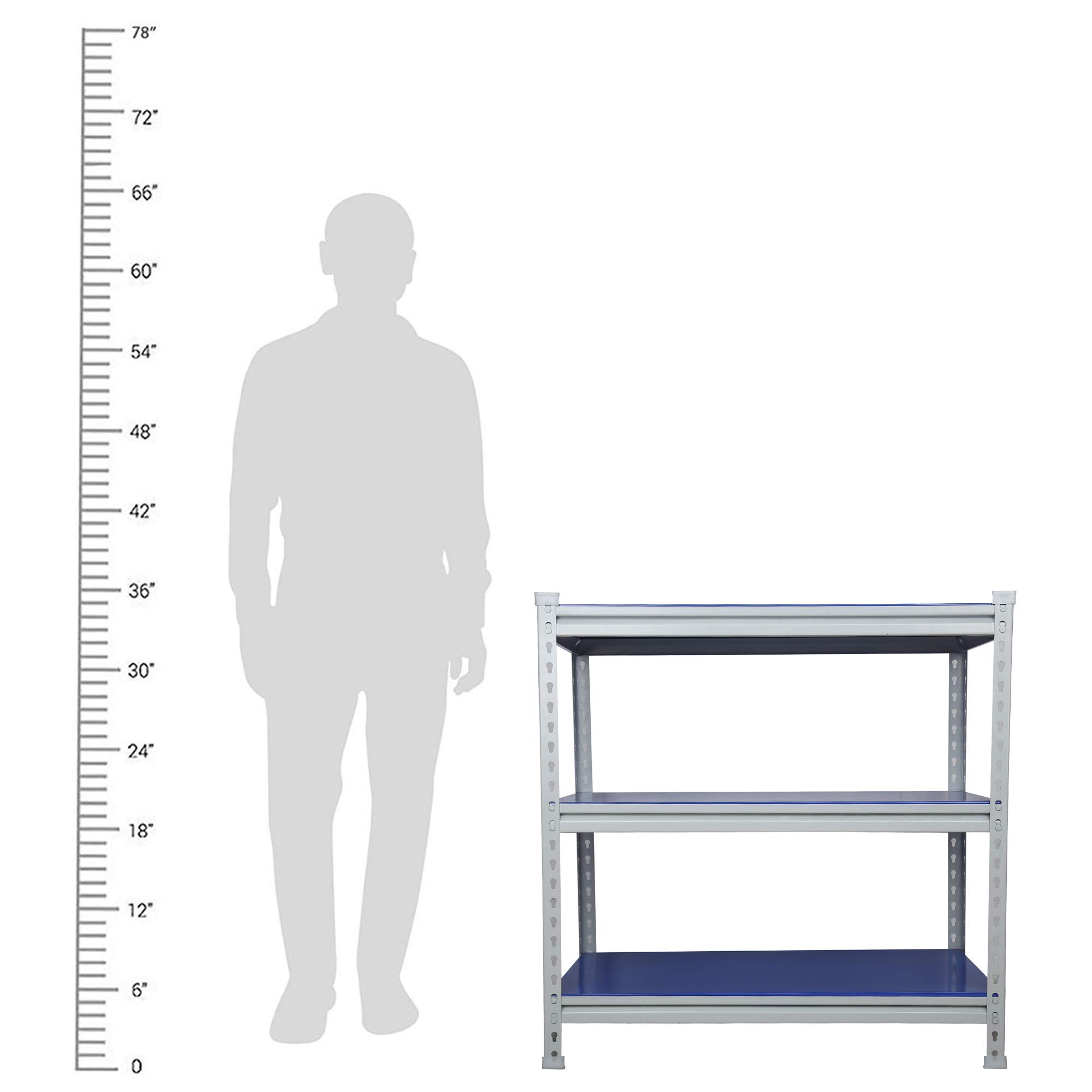 Mil-Nil Prime CRC Sheet Powder Coating Glossy Finish 3 Shelf Multipurpose Boltless Rack (Blue, 36 X 36 X 18 Inch) 22 Gauge