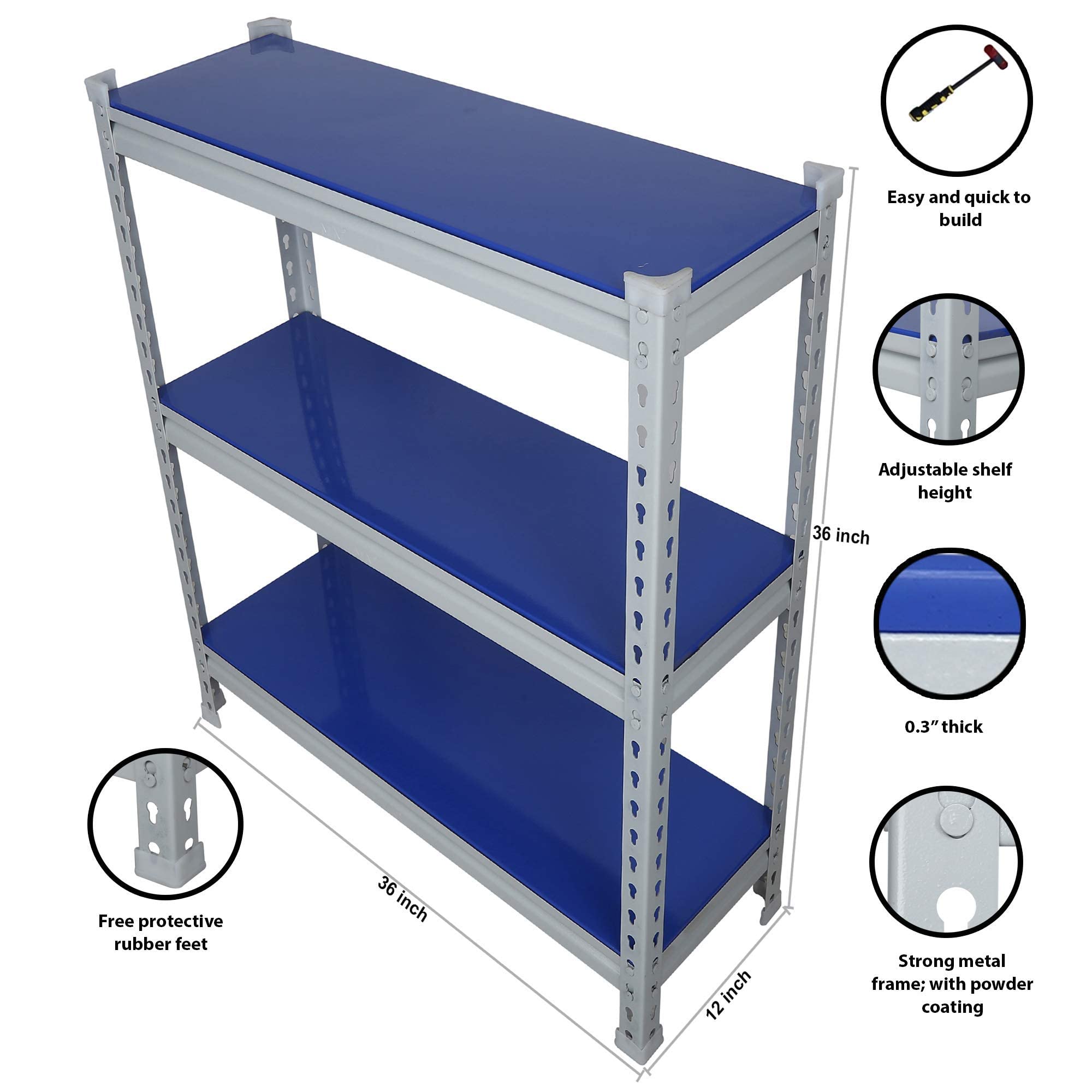 Item NameMil-Nil Prime CRC Sheet Powder Coating Glossy Finish 3 Shelf Multipurpose Boltless Rack (Blue, 36 X 36 X 18 Inch) 22 Gauge